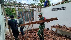 TNI-POLRI dan Warga Pacarejo Kompak Bersihkan Puing Rumah Pasca Angin Ribut