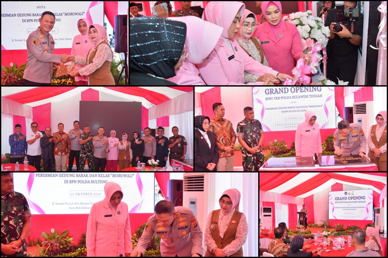 Acara peresmian berlangsung sederhana namun penuh makna. Kapolda Sulteng menandatangani prasasti bersama Ketua Bhayangkari Daerah Sulteng sekaligus memotong pita gedung SPPG baru.