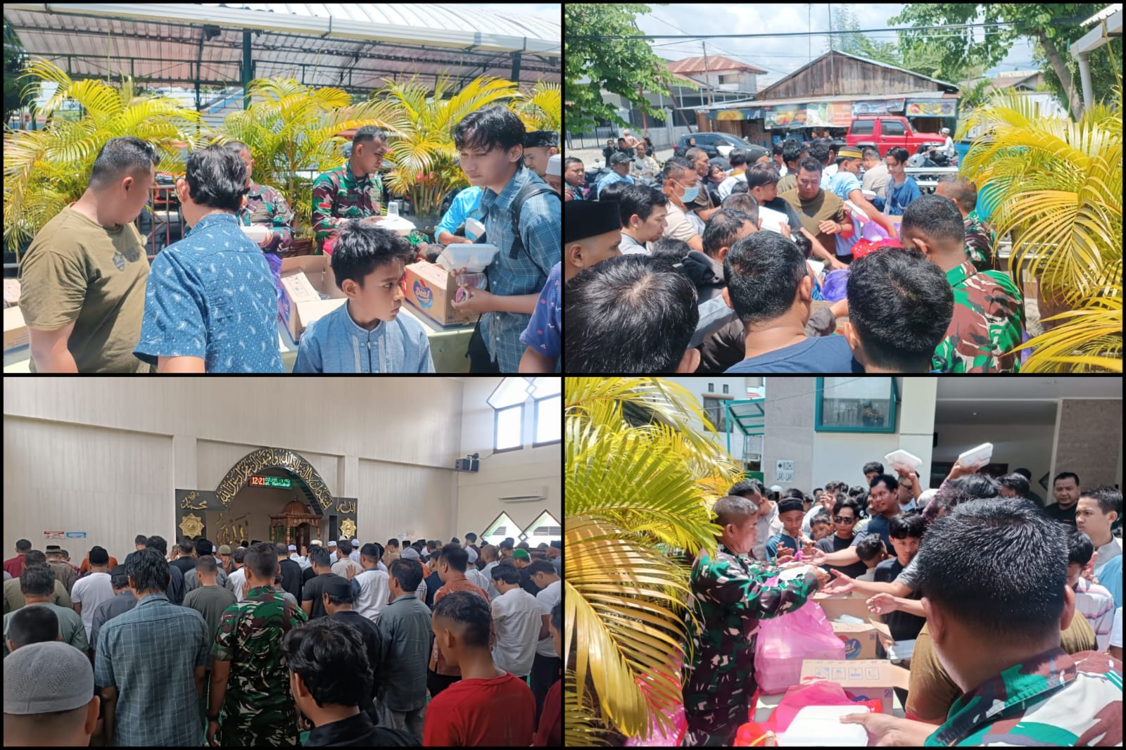 Pada kesempatan tersebut, prajurit Korem 132/Tdl bersama jamaah Masjid Al Bayan melaksanakan sholat Jumat berjamaah, dilanjutkan dengan pembagian makan siang gratis berupa paket nasi kota kepada masyarakat yang membutuhkan di sekitar lingkungan masjid.