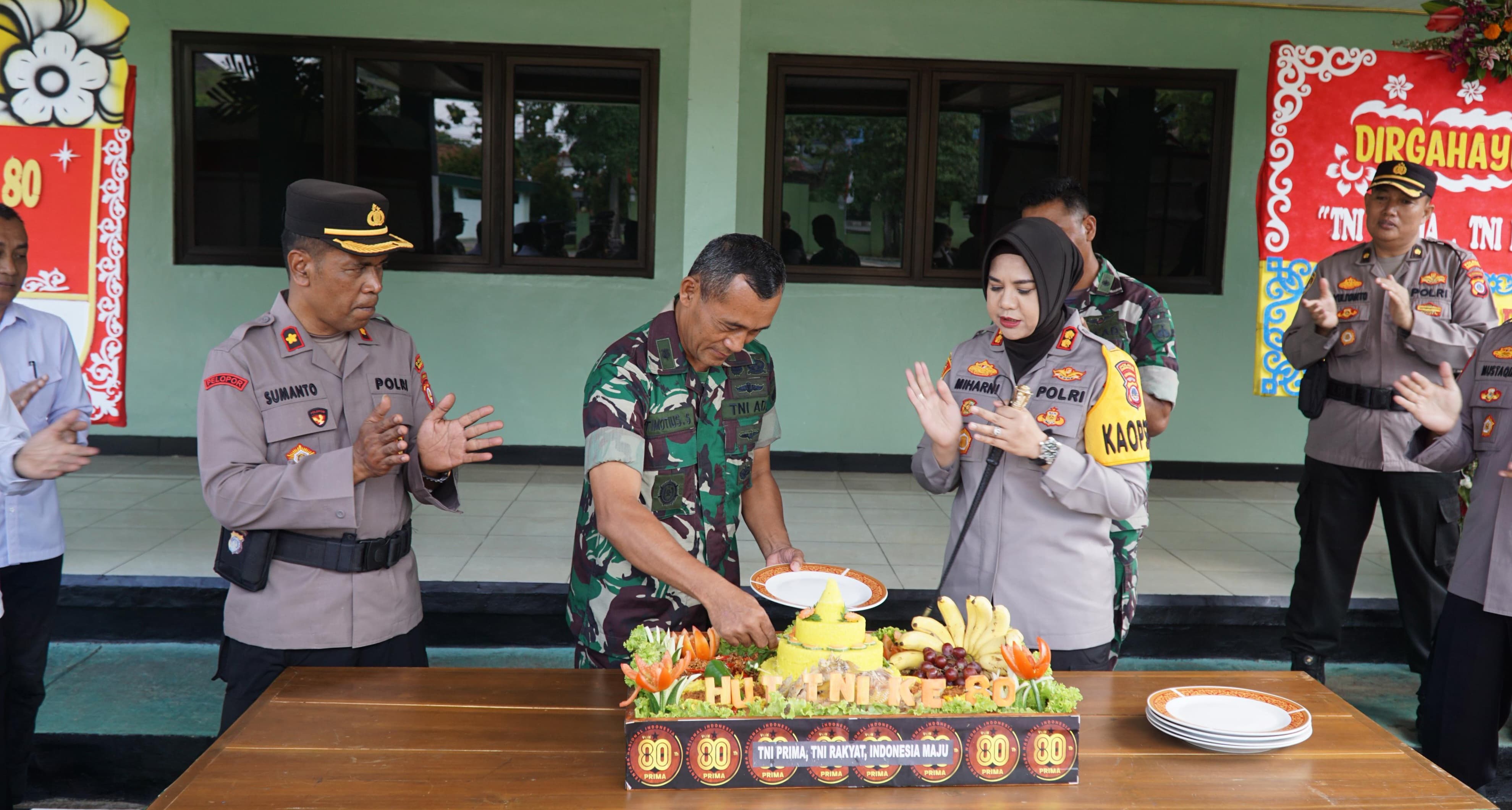 Dalam suasana penuh kekeluargaan, kegiatan di tandai dengan pemotongan Nasi tumpeng dan pemberian ucapan selamat. Momen tersebut menjadi simbol soliditas dan sinergitas yang kuat antara TNI dan Polri di wilayah Kabupaten Gunungkidul.