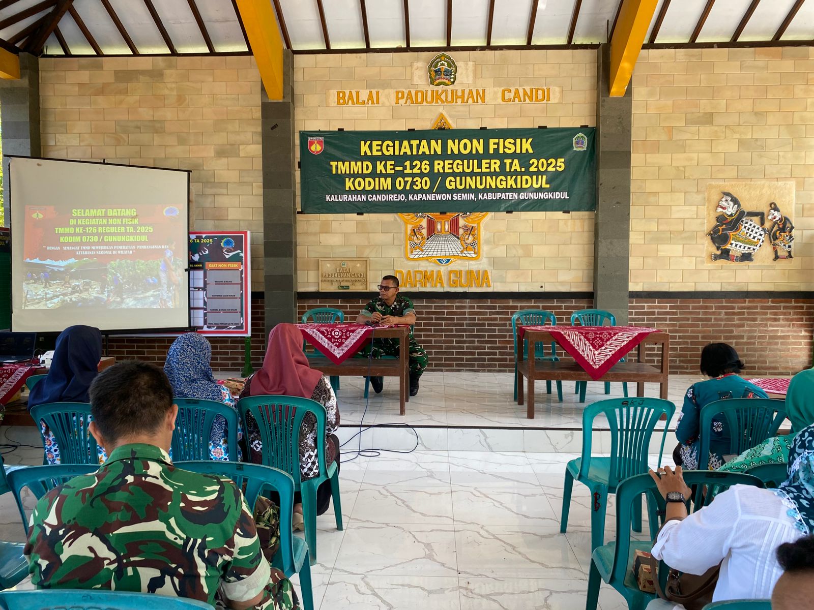 GUNUNGKIDUL (DIY) – MEDIA ONLINENEWS.ID// Dalam rangka pelaksanaan TNI Manunggal Membangun Desa (TMMD) ke-126 Reguler Tahun 2025, Kodim 0730/Gunungkidul melanjutkan kegiatan non fisik di Kalurahan Candirejo, Kapanewon Semin, Kabupaten Gunungkidul, dengan menghadirkan sejumlah penyuluhan penting bagi masyarakat.Kamis (16/10/2025).
