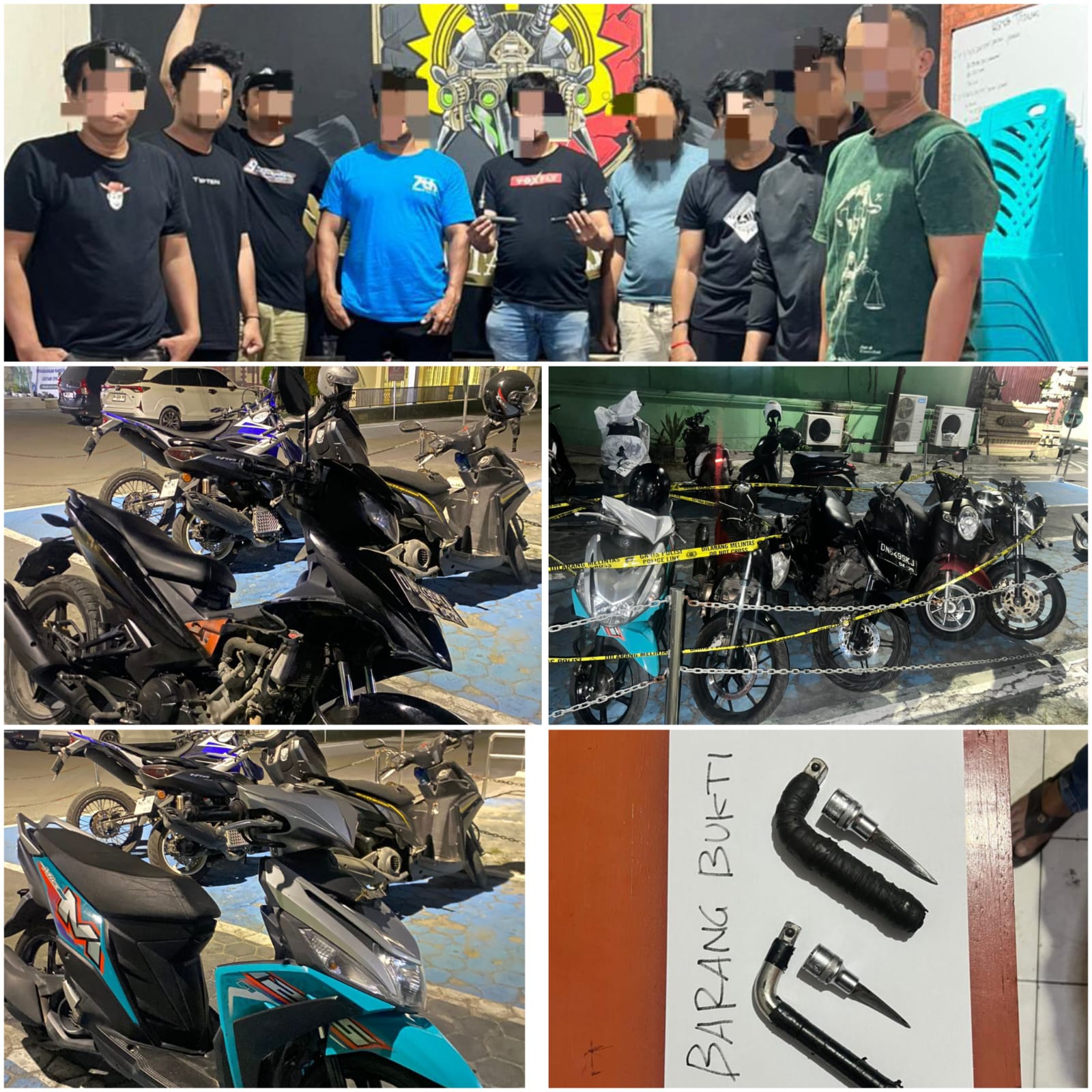 Dari hasil penyelidikan sementara, sedikitnya ada 11 laporan polisi terkait tindak pidana curanmor yang dilakukan para pelaku di wilayah hukum Polresta Palu. Sejumlah barang bukti yang berhasil diamankan antara lain satu unit Honda Beat hitam, satu unit Yamaha Mio M3 hijau, satu unit Suzuki Satria Fu merah, satu unit Yamaha MX-King hitam, satu unit Honda Scoopy merah, satu unit Yamaha Vixion hitam, tiga buah helm, dan dua buah kunci L yang digunakan dalam aksi kejahatan mereka.