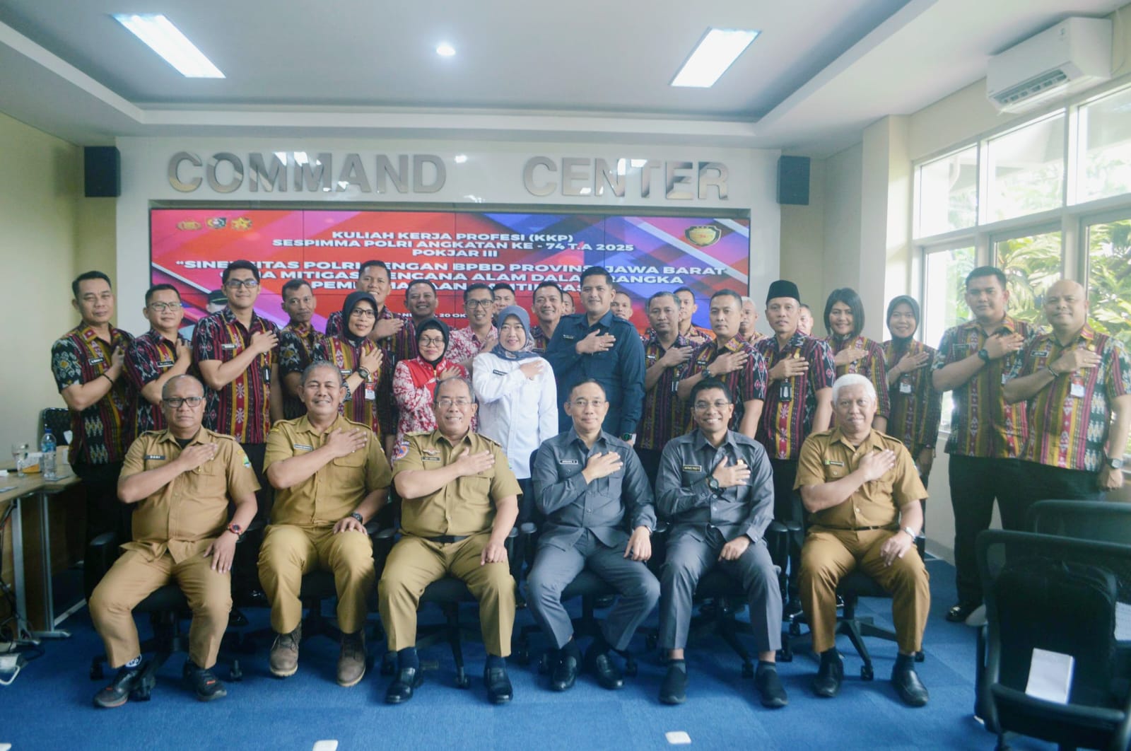 JABAR-MEDIA ONLINENEWS.ID//Sekolah Staf dan Pimpinan Pertama (Sespimma) Polri angkatan ke-74 melaksanakan kegiatan Kuliah Kerja Profesi (KKP) di kantor Badan Penanggulangan Bencana Daerah (BPBD) Provinsi Jawa Barat, Senin (20/10). Kegiatan ini merupakan bagian dari proses pembelajaran lapangan untuk memperdalam pemahaman peserta didik seputar kebencanaan.