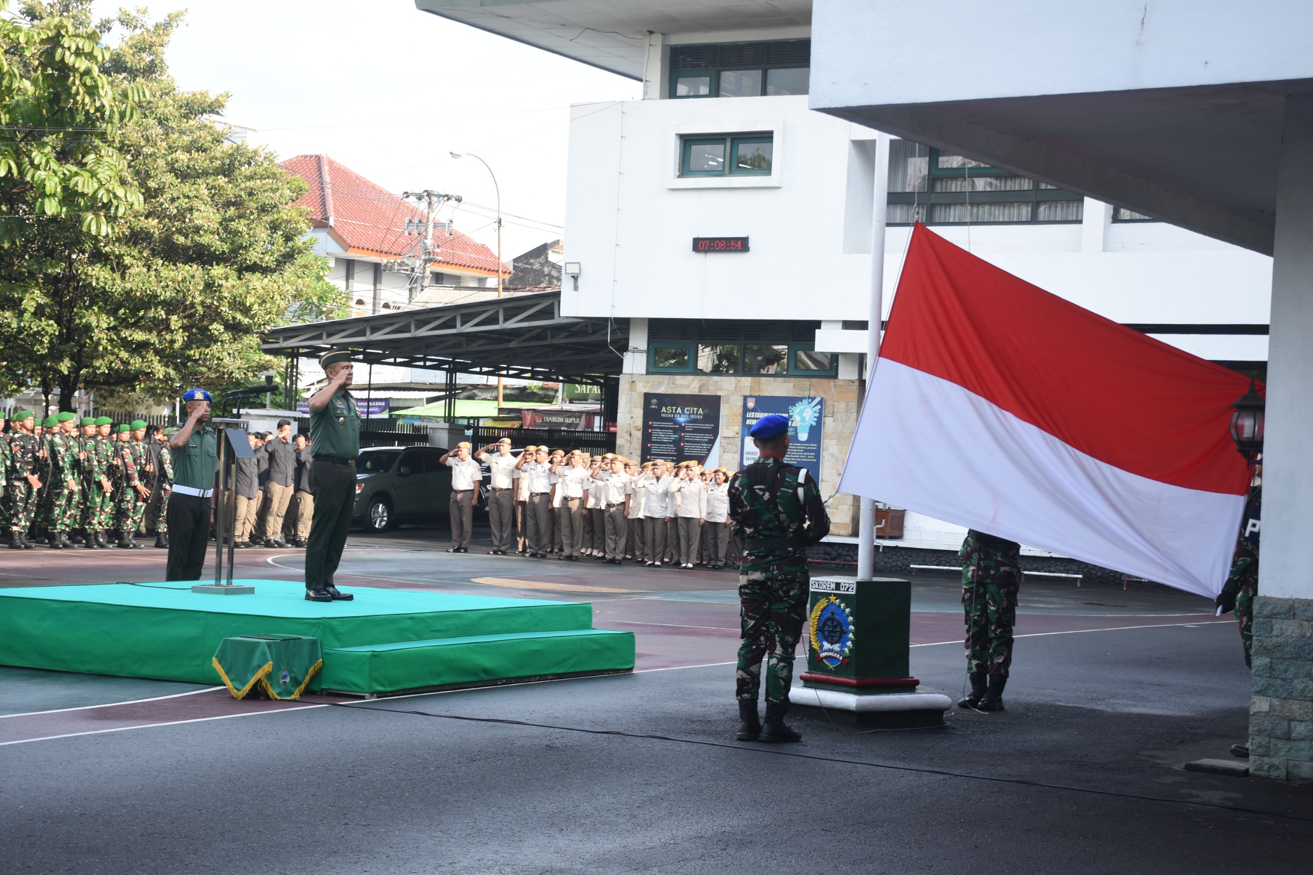 Upacara Bendera Mingguan yang rutin dilaksanakan setiap hari Senin ini, bertujuan untuk menggelorakan semangat nasionalisme dan mengenang jasa para pahlawan, sekaligus sebagai sarana untuk meningkatkan disiplin dan militansi prajurit dan PNS Korem 072/Pamungkas serta soliditas dalam setiap embanan tugas.