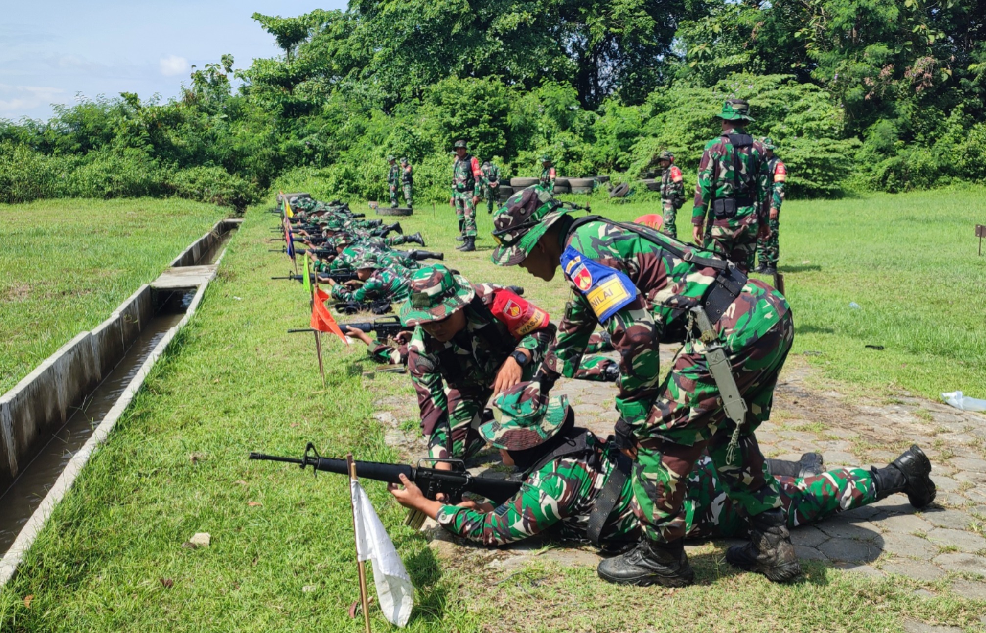“Saat ini kita melaksanakan materi latihan menembak jarak 100 meter dengan tiga sikap, yakni sikap tiarap, duduk dan berdiri “, ucapnya.