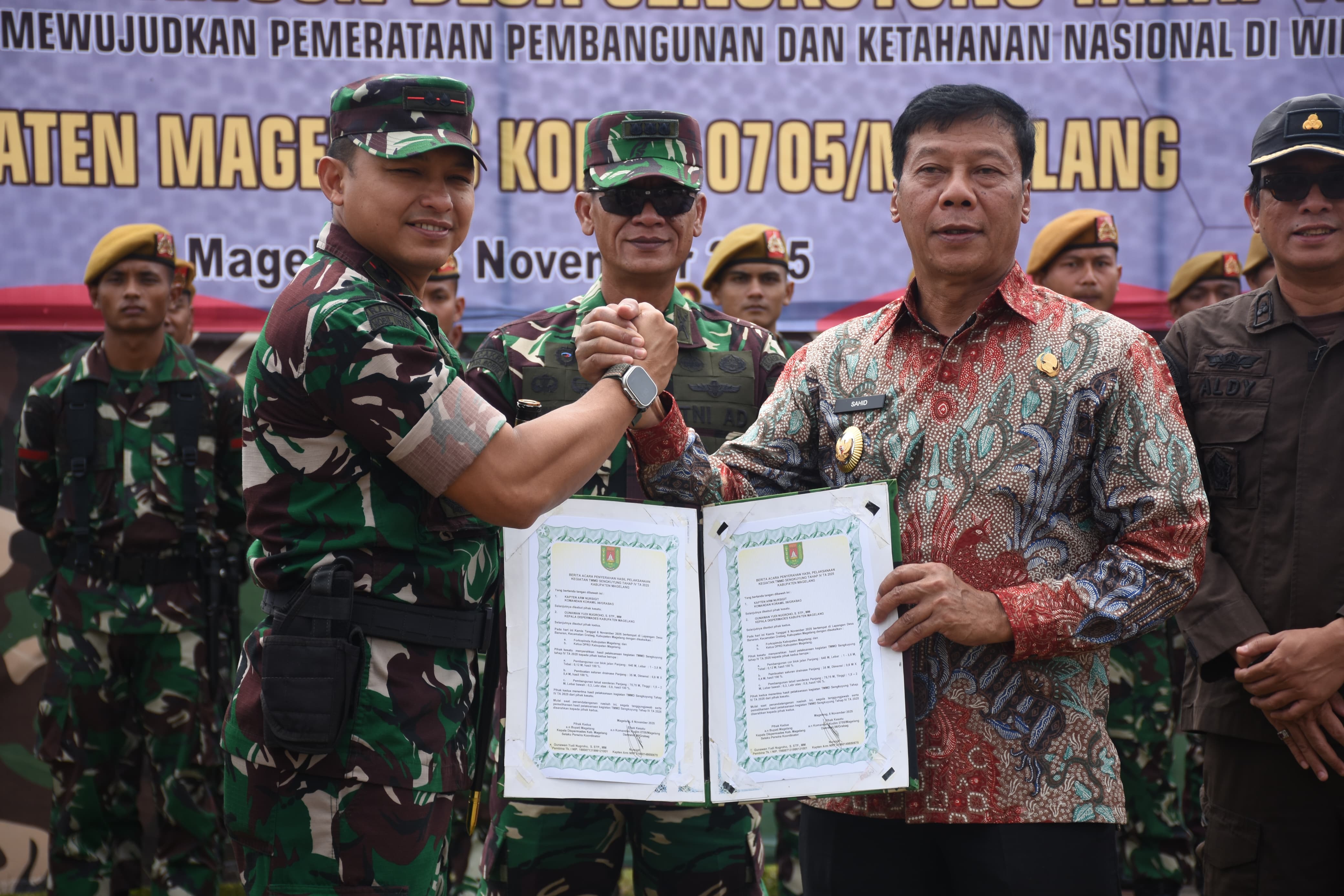 Upacara penutupan dipimpin oleh Dandim 0705/Magelang Letkol Inf Afrizal Rakhman, S.I.P., M.I.P., dan diikuti oleh unsur TNI, Polri, pemerintah daerah, tokoh masyarakat, pelajar, serta warga sekitar dengan mengusung tema “Dengan Semangat TMMD Wujudkan Pemerataan Pembangunan dan Ketahanan Nasional di Wilayah.”