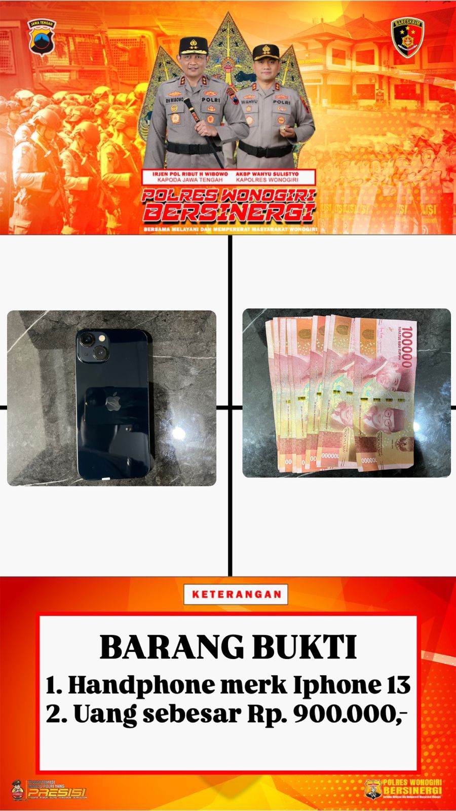 Merasa dirugikan, korban kemudian melaporkan kejadian tersebut ke Polres Wonogiri untuk ditindaklanjuti.