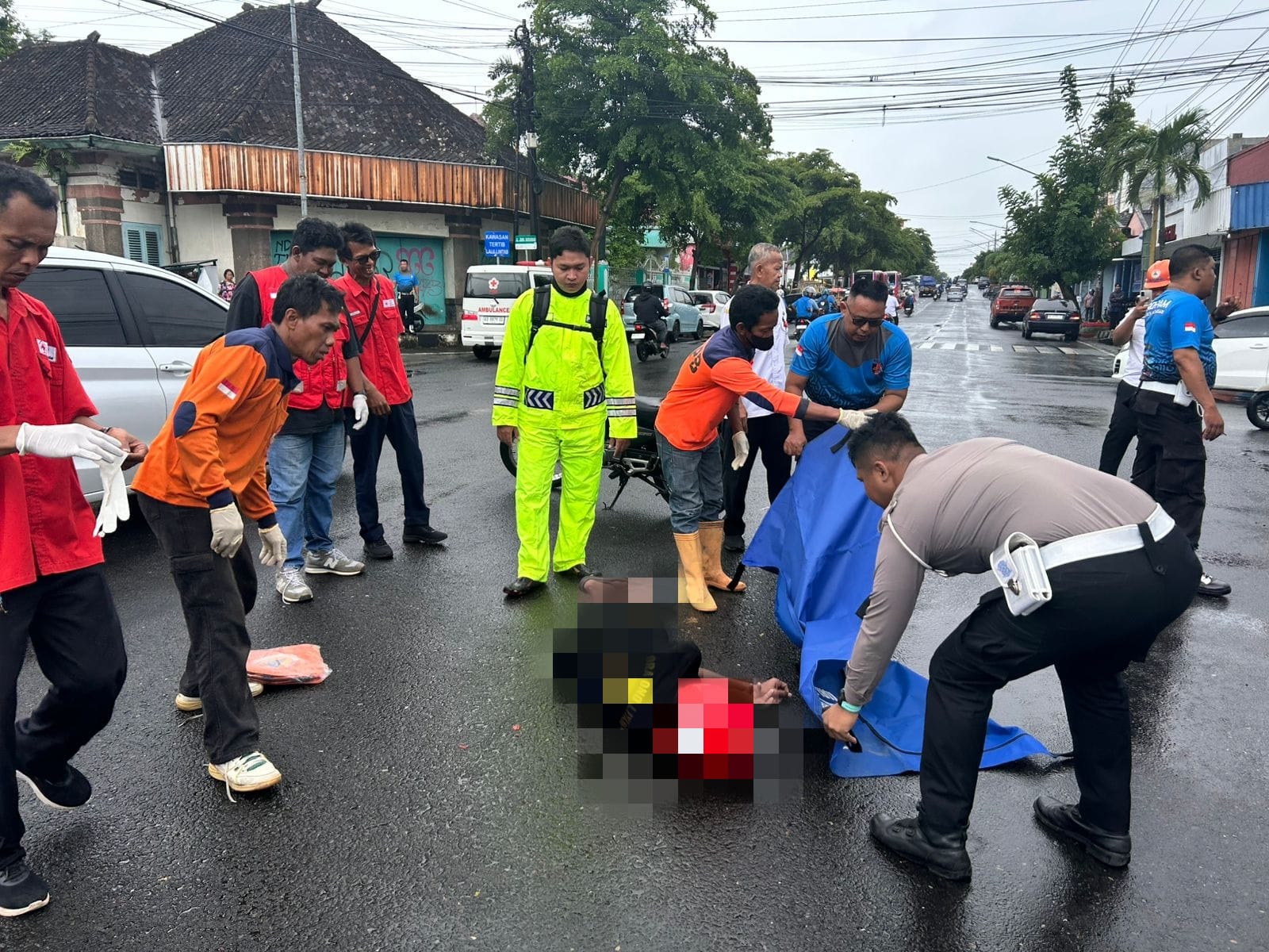 WONOGIRI, JATENG-MEDIA ONLINENEWS.ID//Sat Lantas Polres Wonogiri bergerak cepat menangani kecelakaan lalu lintas tunggal yang terjadi di Jalan Jenderal Sudirman, tepatnya di Simpang Empat Traffic Light Gudang Seng, Lingkungan Sukorejo, Giritirto, Wonogiri, Rabu (26/11/2025) sekitar pukul 10.40 WIB. Peristiwa ini menyebabkan seorang pengendara motor meninggal dunia di lokasi kejadian.