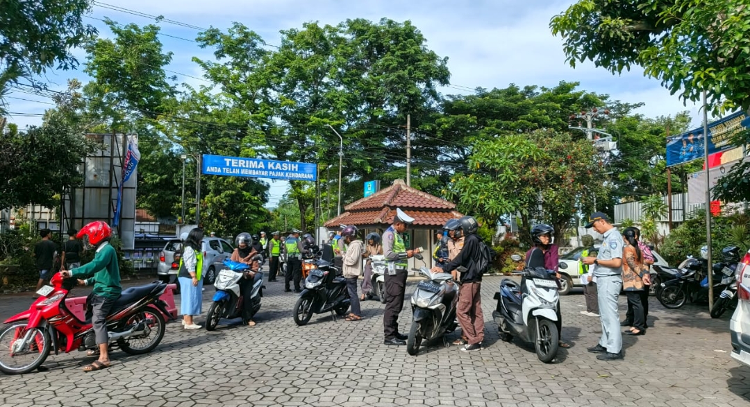 Selain penyampaian imbauan, petugas juga membagikan 200 brosur Ops Zebra Candi 2025 serta 200 brosur sosialisasi kepatuhan berkendaraan bermotor. Kegiatan di area Samsat dimanfaatkan warga untuk mengurus pembayaran pajak kendaraan, yang pada kesempatan ini tercatat sebanyak 16 objek dengan total penerimaan Rp10.103.500.