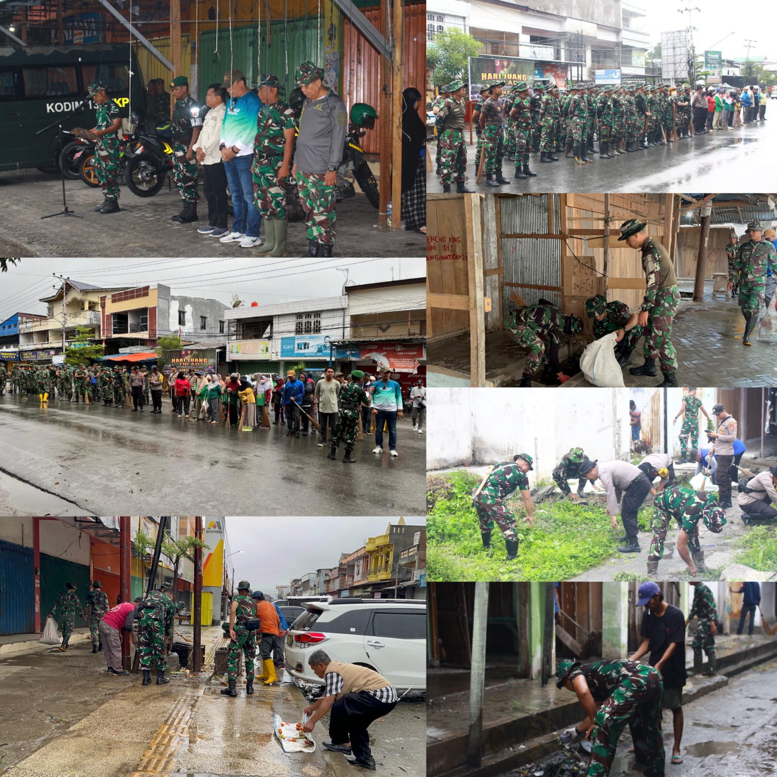 Personel Korem 132/Tdl bersama unsur masyarakat, pedagang, serta perangkat pasar bergotong royong melakukan pembersihan area pasar, pengangkutan sampah, penataan drainase, dan perapihan fasilitas umum. Suasana kebersamaan tampak kuat saat prajurit dan warga bekerja berdampingan, mencerminkan nilai-nilai gotong royong yang terus dijaga oleh TNI AD.