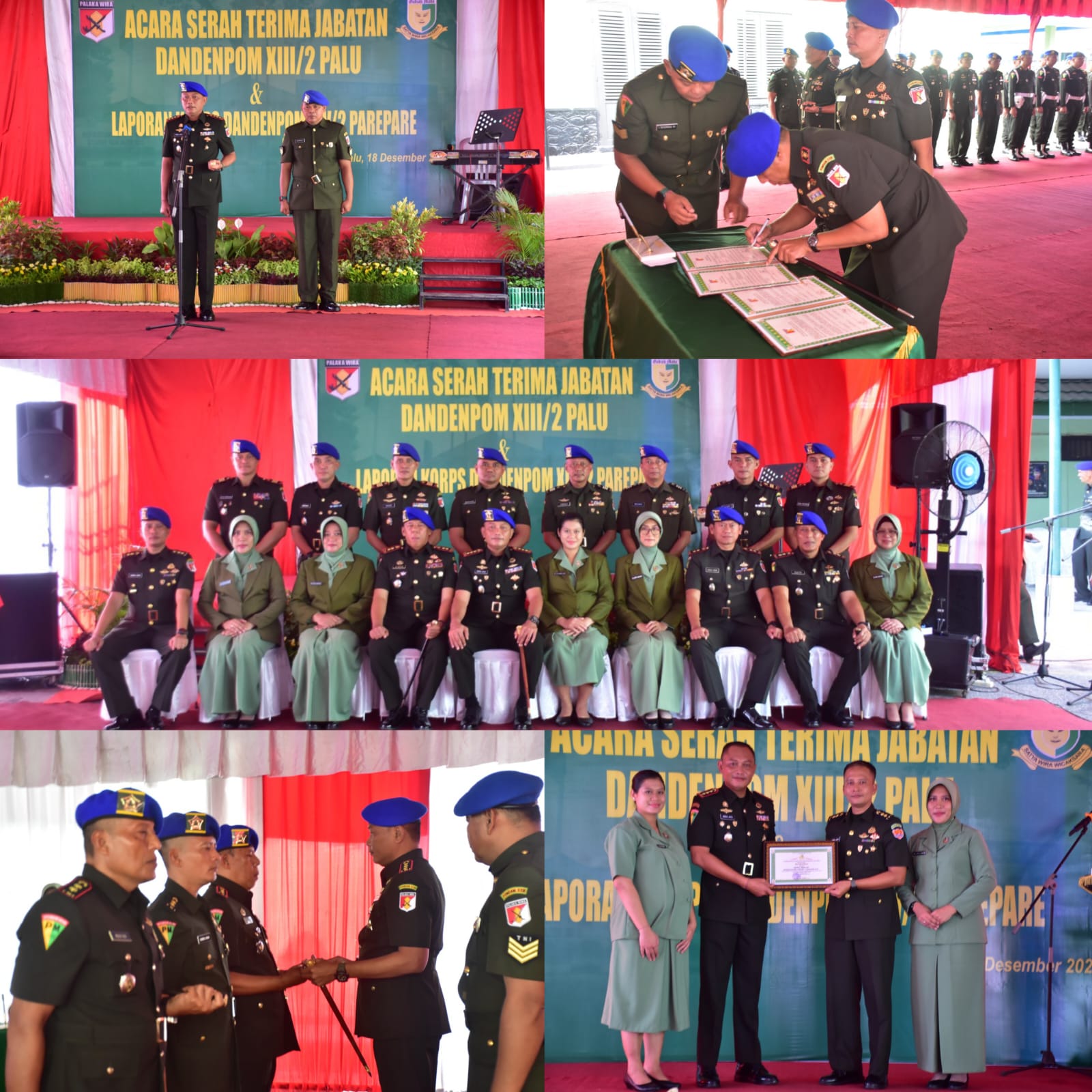 Dalam upacara tersebut, dilaksanakan Serah Terima Jabatan Komandan Detasemen Polisi Militer (Dandenpom) XIII/2 Palu dari Letkol Cpm Choirul Umam, S.H. kepada Letkol Cpm Muhammad Hadian. Selain itu, Danpomdam XXIII/Palaka Wira juga menerima Laporan Korps Dandenpom XIV/2 Parepare Letkol Cpm Agustadi, S.E.