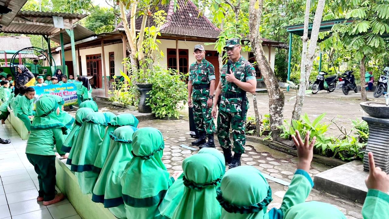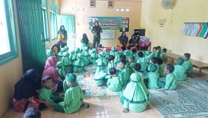 anak-anak Siswa-Siswi KB/TK Qurrota A’yun Giritontro lk 55 orang, dengan materi tentang Cinta tanah air serta pengenalan tentang Tentara Nasional Indonesia khususnya Angkatan Darat.