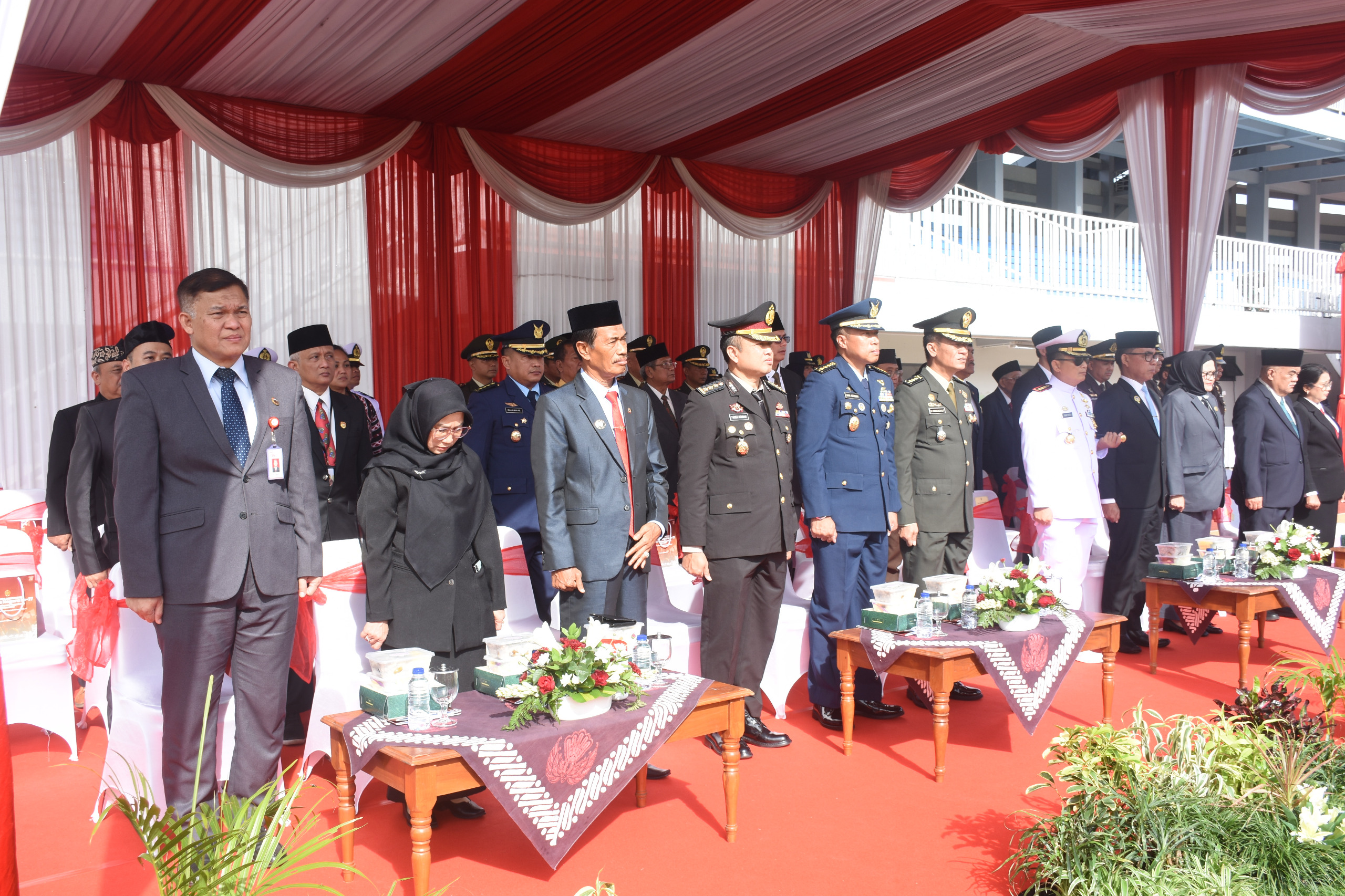 Upacara berlangsung khidmat dan tertib, serta dihadiri oleh Wakil Gubernur DIY KGPAA Paku Alam X, Kabinda DIY Brigjen TNI Firyawan, S.I.P., Danlanal Yogyakarta Kolonel Mar Hafied Indarwan, S.E., perwakilan Lanud Adisutjipto, Polda DIY dan Forkopimda DIY. (Penrem072PMK)