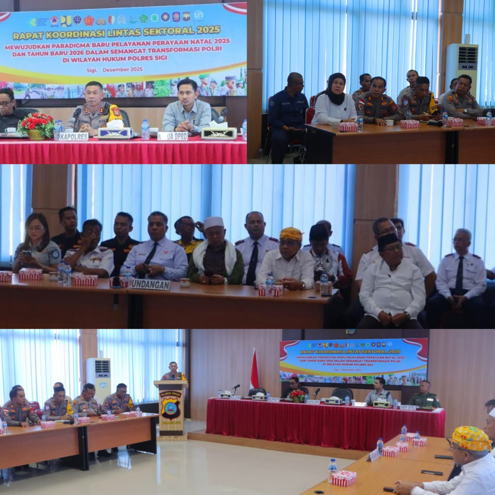 SIGI, SULTENG-MEDIA ONLINENEWS.ID//Guna menyatukan persepsi dalam rangka pelayanan perayaan Natal 2025 dan Tahun Baru 2026, Polres Sigi menggelar Rapat Koordinasi (Rakor) Lintas Sektoral Operasi Lilin Tinombala 2025 di Aula Simpotove Polres Sigi, Jumat (19/12/2025).