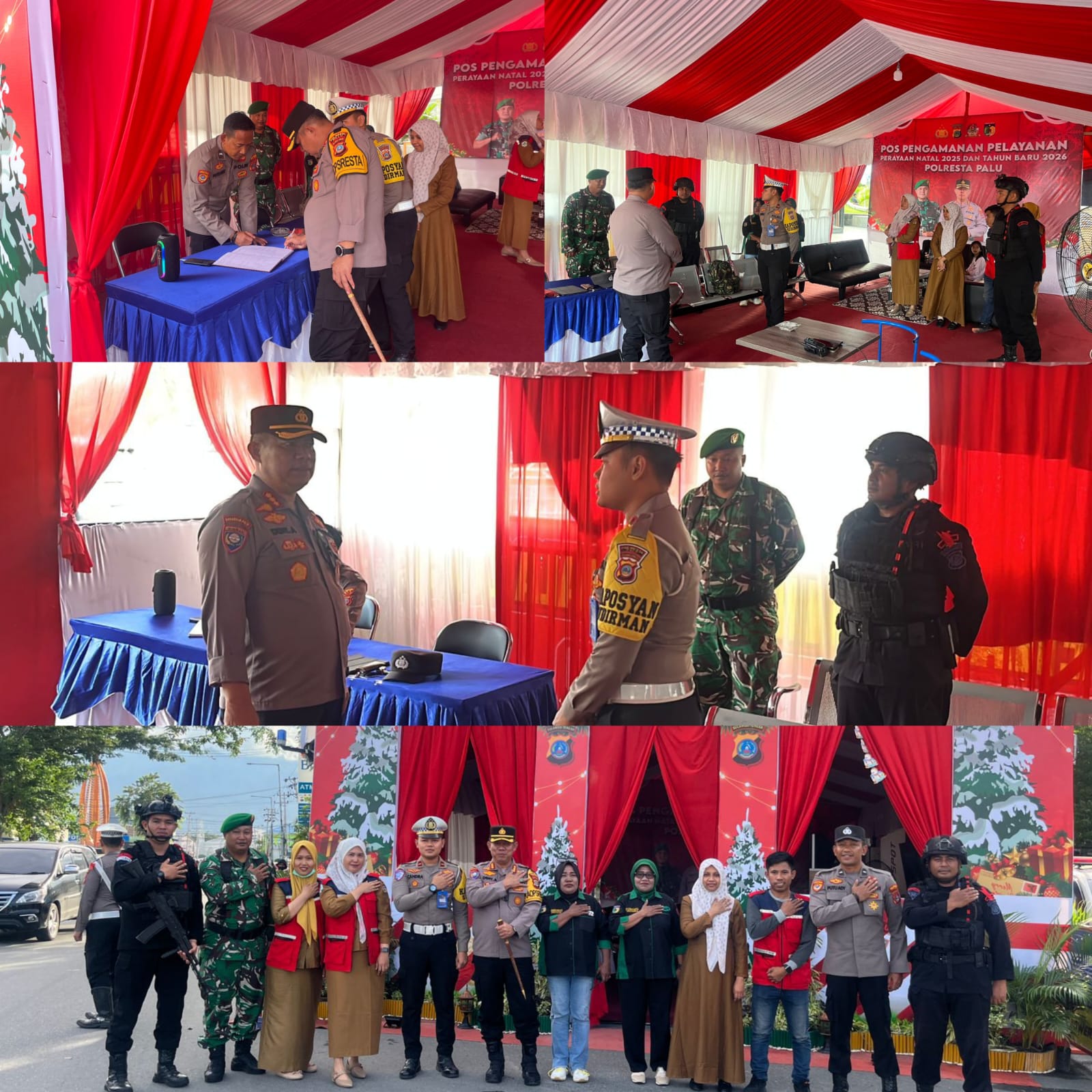 PALU, SULTENG- MEDIA ONLINENEWS. ID//Di tengah semarak perayaan Natal 2025 dan menyongsong Tahun Baru 2026, Kapolresta Palu Kombes Pol Deny Abrahams, S.H., S.I.K., M.H., turun langsung ke lapangan meninjau Pos Pengamanan (Pos PAM), Pos Pelayanan (Pos Yan), serta Pos Terpadu Operasi Lilin 2025 di wilayah hukum Polresta Palu, Senin, 22 Desember 2025.