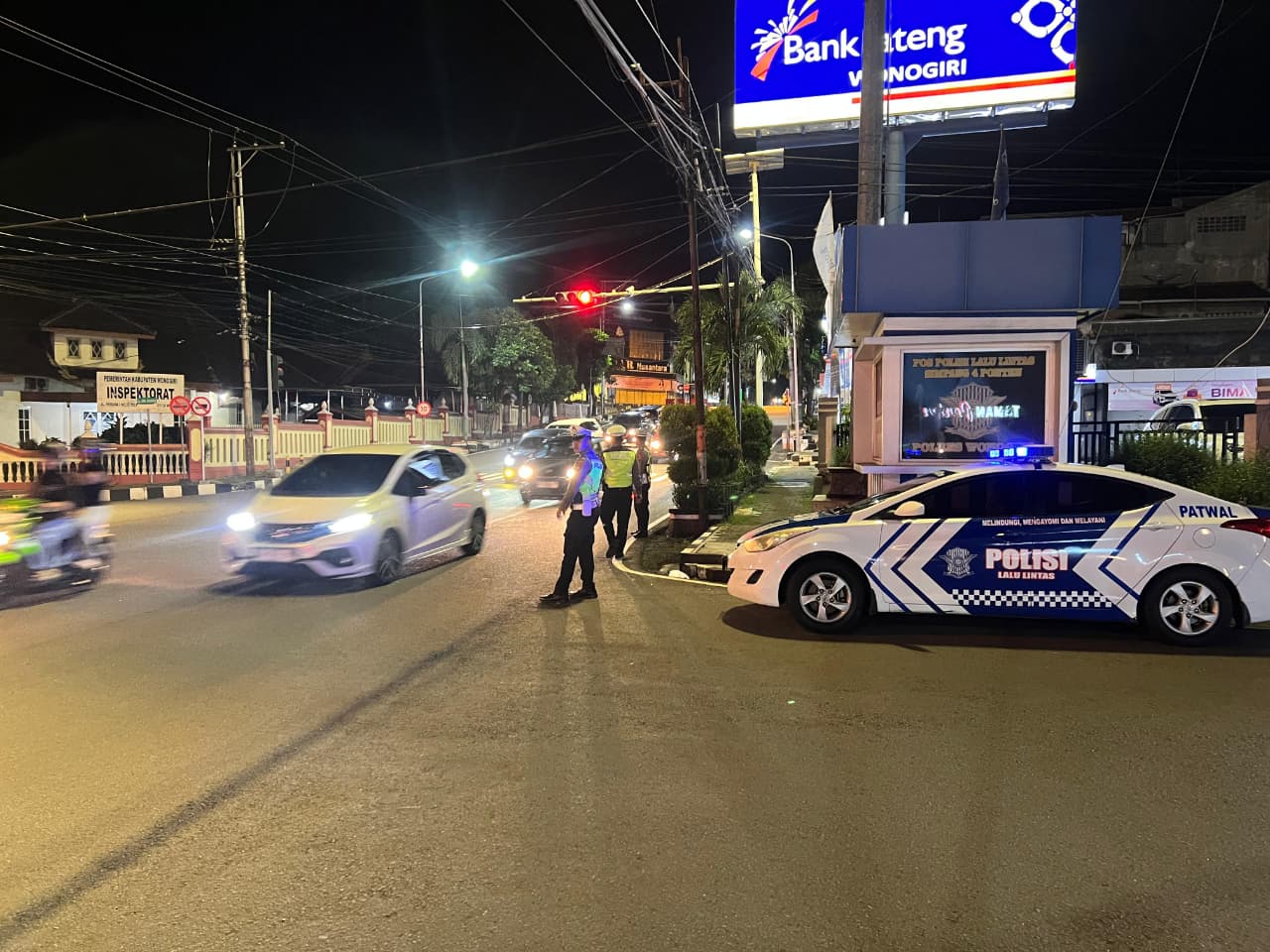 Patroli yang dimulai sejak pukul 21.30 WIB tersebut dilaksanakan secara menyeluruh di wilayah Kabupaten Wonogiri, dengan fokus pada titik-titik rawan kepadatan arus kendaraan, lokasi aktivitas masyarakat, serta area yang berpotensi digunakan untuk aksi balap liar dan pelanggaran lalu lintas lainnya.