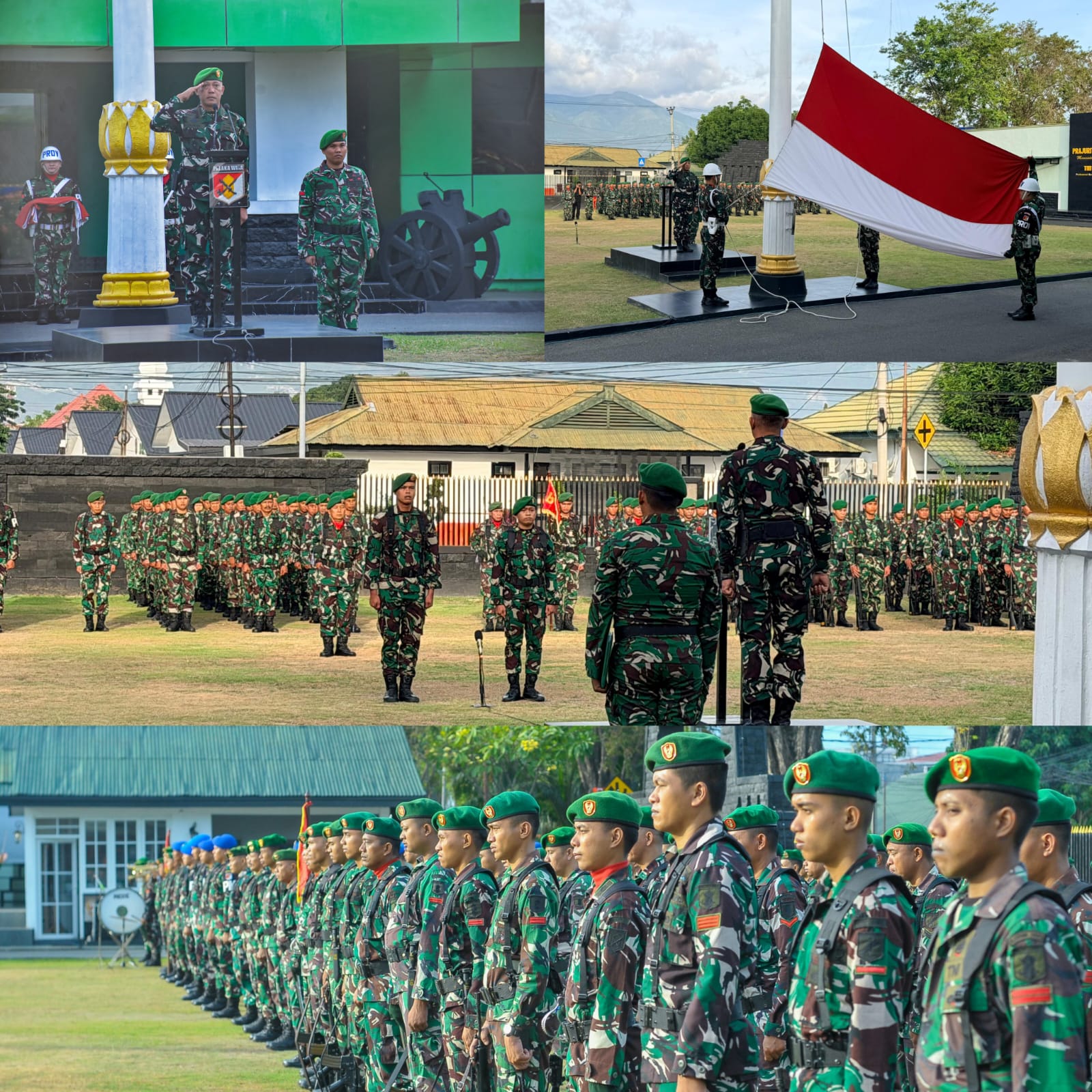 Upacara Bendera berlangsung dengan khidmat dan tertib. Bertindak selaku Inspektur Upacara yakni Asisten Operasi (Asops) Kodam XXIII/Palaka Wira, Kolonel Inf Arif Kurniawan.