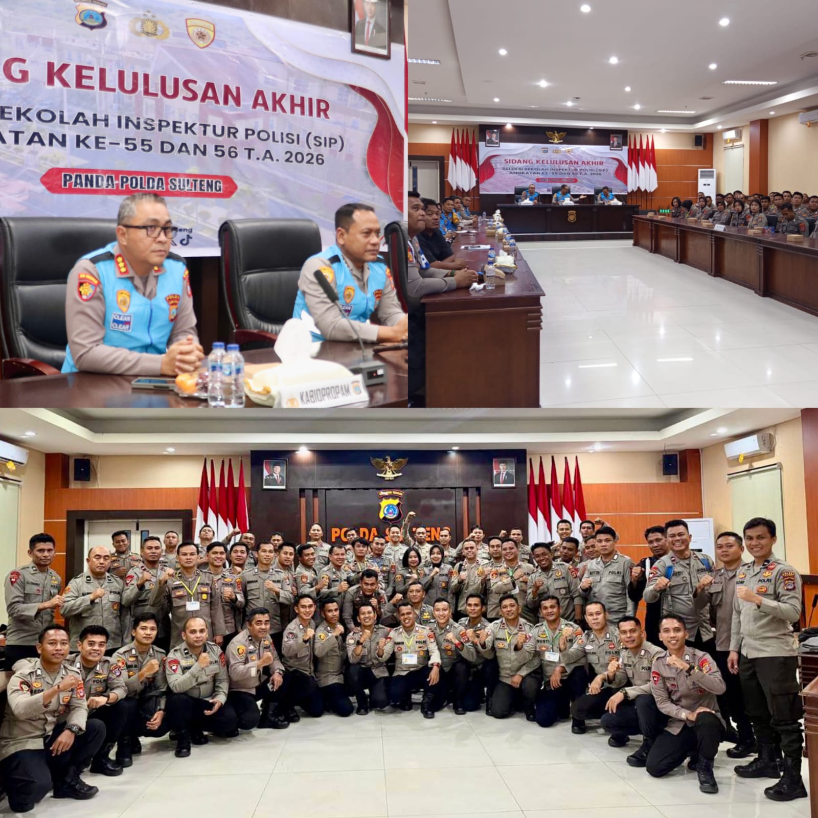PALU, SULTENG- MEDIA ONLINENEWS. ID//Proses seleksi pendidikan Sekolah Inspektur Polisi (SIP) Angkatan ke-55 dan 56 Tahun Ajaran 2026 di lingkungan Polda Sulawesi Tengah memasuki tahap akhir. Hal itu ditandai dengan pelaksanaan sidang kelulusan tingkat Panitia Daerah (Panda) yang berlangsung di Aula Rupatama Polda Sulteng, Selasa (30/12/2025).