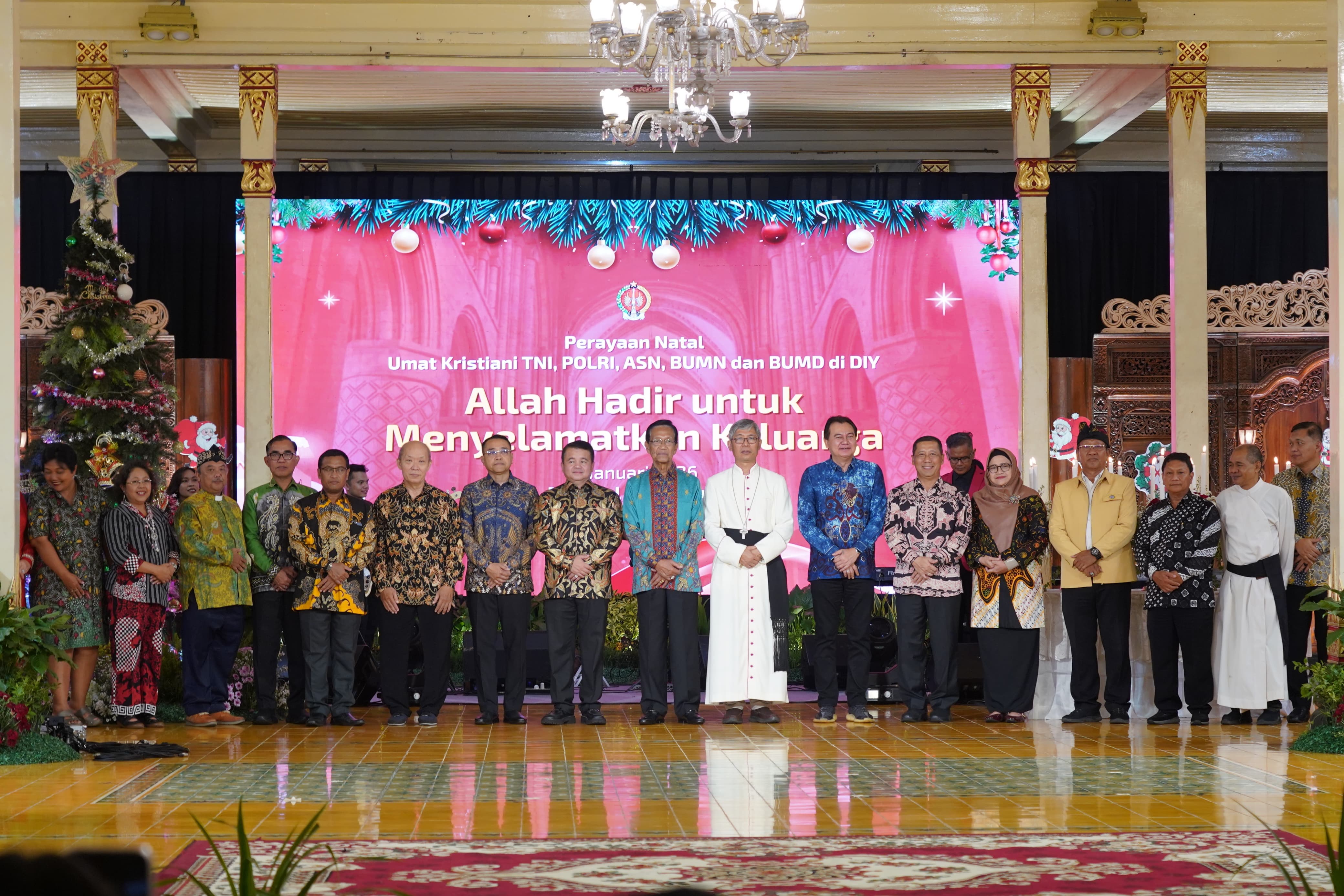 Perayaan Natal diselenggarakan oleh Pemerintah Provinsi DIY dengan mengusung tema “Allah Hadir untuk Menyelamatkan Keluarga” dan diikuti sekitar 600 peserta dari berbagai unsur pemerintahan, aparat keamanan, tokoh agama, serta masyarakat.