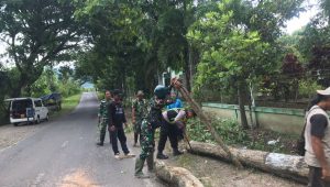 Dengan Sigap, Anggota Koramil Kismantoro Bersama Warga Singkirkan Puing Pohon yang Tumbang