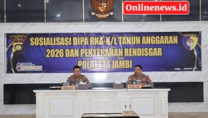 JAMBI-MEDIA ONLINENEWS.ID//Dalam rangka optimalisasi pelaksanaan program kerja tahun anggaran 2026, Kapolresta Jambi Kombes Pol Boy Sutan Binanga Siregar, S.I.K., M.H., memimpin langsung kegiatan Sosialisasi DIPA RKA-K/L Tahun Anggaran 2026 serta penyerahan Rencana Distribusi Kegiatan Anggaran (Rendisgar) kepada seluruh jajaran Polresta Jambi. Selasa (13/01/2026).