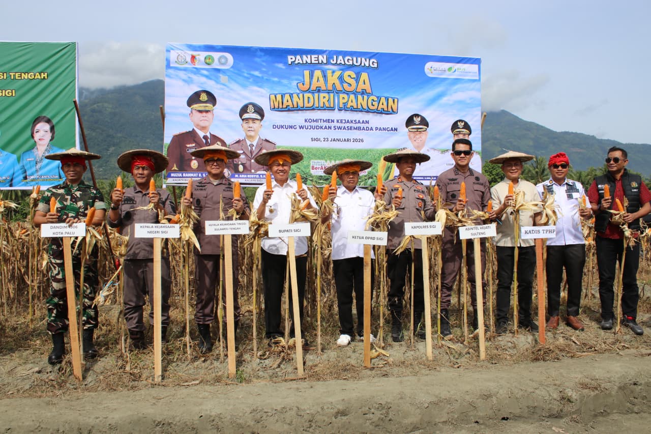 SIGI, SULTENG -MEDIA ONLINENEWS.ID//Kejaksaan Tinggi Sulawesi Tengah kembali menunjukkan peran strategisnya sebagai institusi negara yang tidak hanya fokus pada penegakan hukum, tetapi juga aktif mendukung pembangunan dan kesejahteraan masyarakat. Hal tersebut diwujudkan melalui kegiatan panen jagung Program Jaksa Mandiri Pangan yang dilaksanakan Kejari Sigi bersama Pemerintah Kabupaten Sigi di Desa Rarampadende, Kecamatan Dolo Barat.