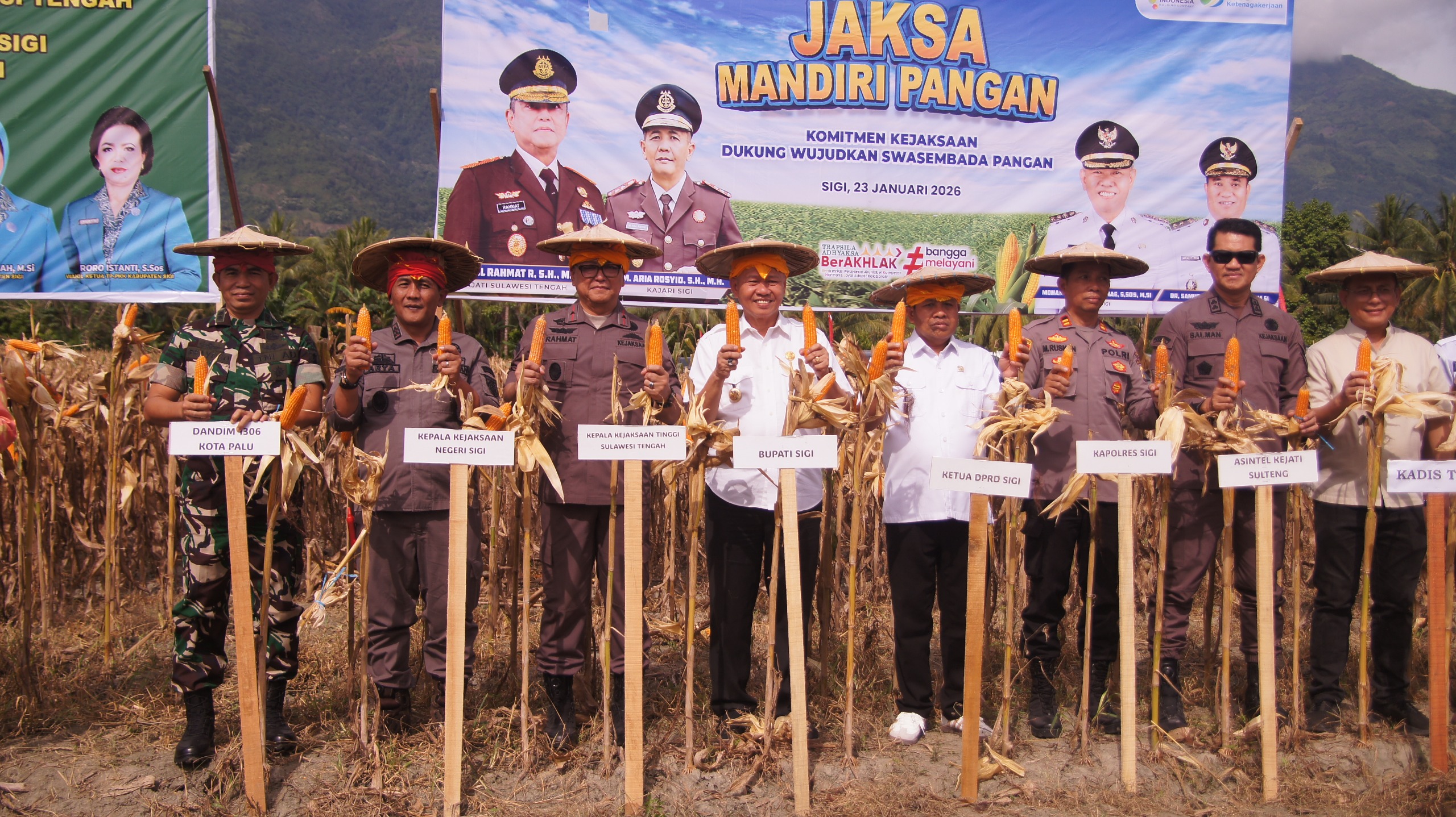 SIGI, SULTENG-MEDIA ONLIN NEWS.ID// Sinergitas lintas institusi di Kabupaten Sigi kembali terwujud dalam kegiatan panen jagung perdana Program Jaksa Mandiri Pangan di Desa Rarampadende, Kecamatan Dolo Barat, Jumat (23/1/2026). Kehadiran representasi Polres Sigi yang diwakili oleh Kapolsek Dolo Iptu Moh. Rusman, S.H., M.H. menjadi bukti nyata komitmen kepolisian dalam mendukung program ketahanan pangan nasional.