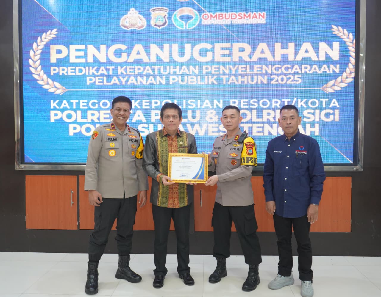 Ombudsman RI Anugerahkan Predikat Kepatuhan Pelayanan Publik Tahun 2025 kepada Polres Sigi