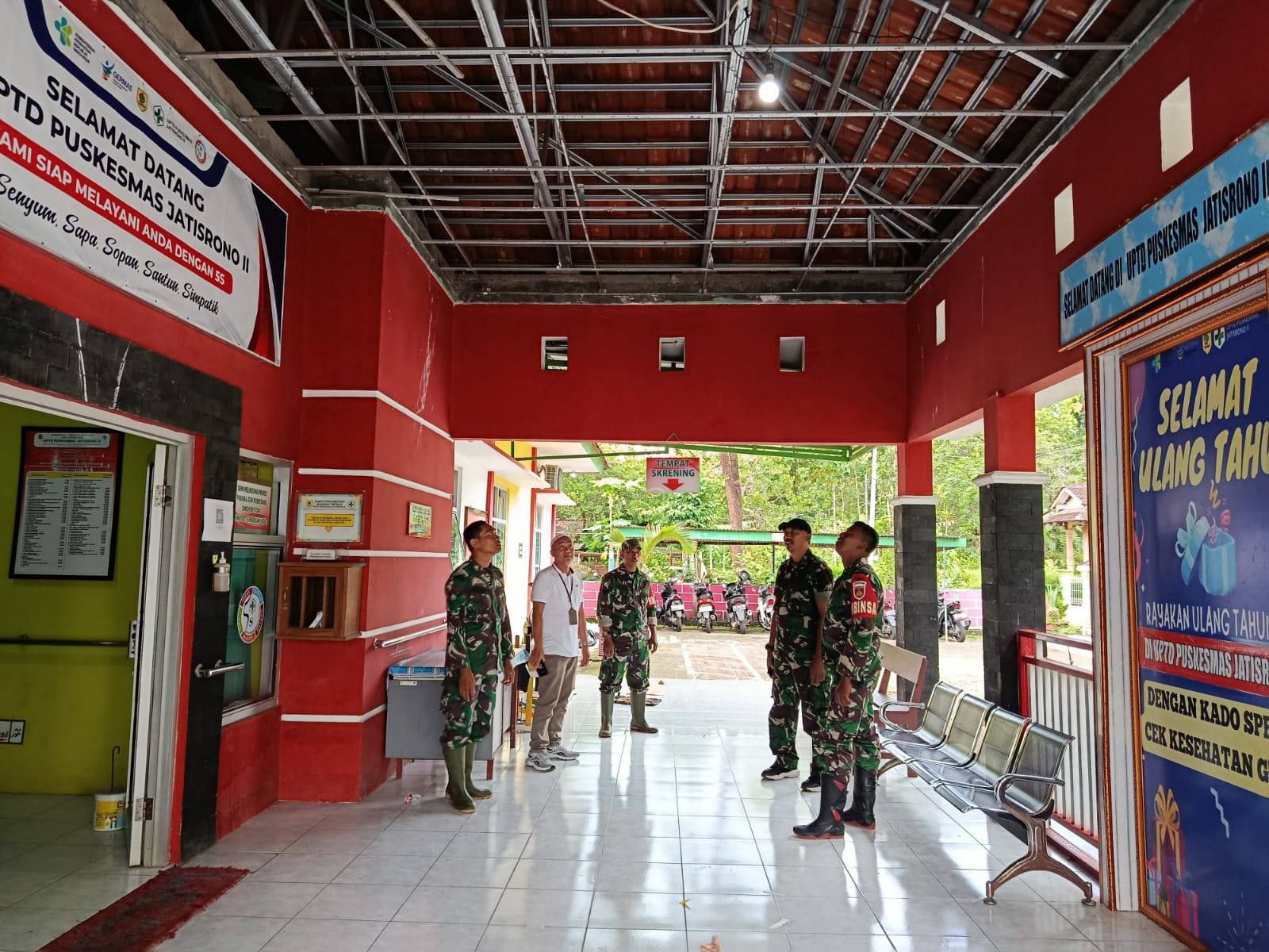 Anggota Koramil 14/ 0728 Kodim Wonogiri SERKA Eko .R, SERTU Mianto ,SERDA Teguh serta Anggota Polsek Kecamatan Jatisrono ada dua personil yaitu Bripka Eko dan Brigadir Irawan langsung mendatangi lokasi setelah menerima laporan sekaligus melakukan pendataan atas kerugian materiil di Puskesmas 2 Kecamatan Jatisrono.