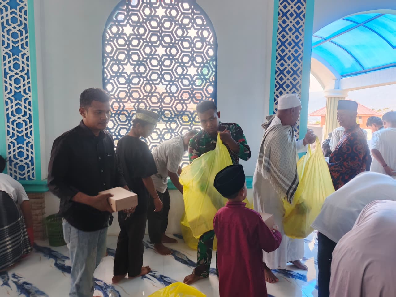 Kegiatan ini menjadi wujud nyata kepedulian TNI terhadap masyarakat, sekaligus sarana mempererat silaturahmi antara prajurit Korem 132/Tadulako dengan jamaah dan warga sekitar. Dalam suasana penuh kebersamaan, prajurit Korem 132/Tdl membagikan bantuan berupa paket makanan kepada jamaah usai pelaksanaan Salat Jumat.