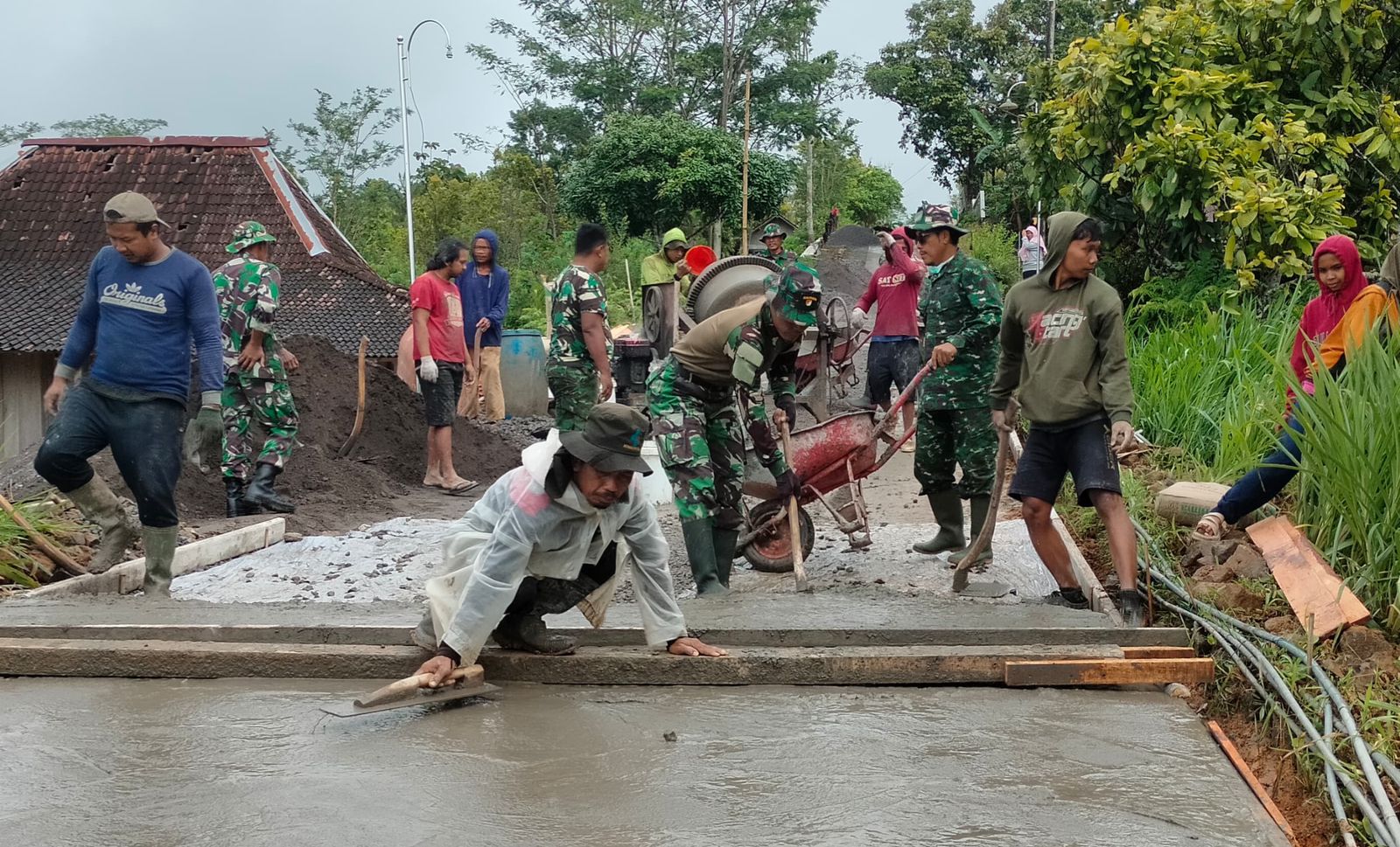 WONOGIRI, JATENG – MEDIA ONLINENEWS.ID//Kemanunggalan prajurit TNI dari Kodim 0728/Wonogiri bersama masyarakat Desa Kembang Kecamatan Jatipurno, dengan penuh semangat tanpa menghiraukan teriknya panas maupun hujan patut diapresiasi.