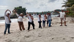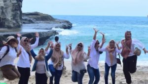 Kemeriahan terlihat dari para anggota yang didominasi ibu- ibu sejak berangkat sampai pantai klayar.