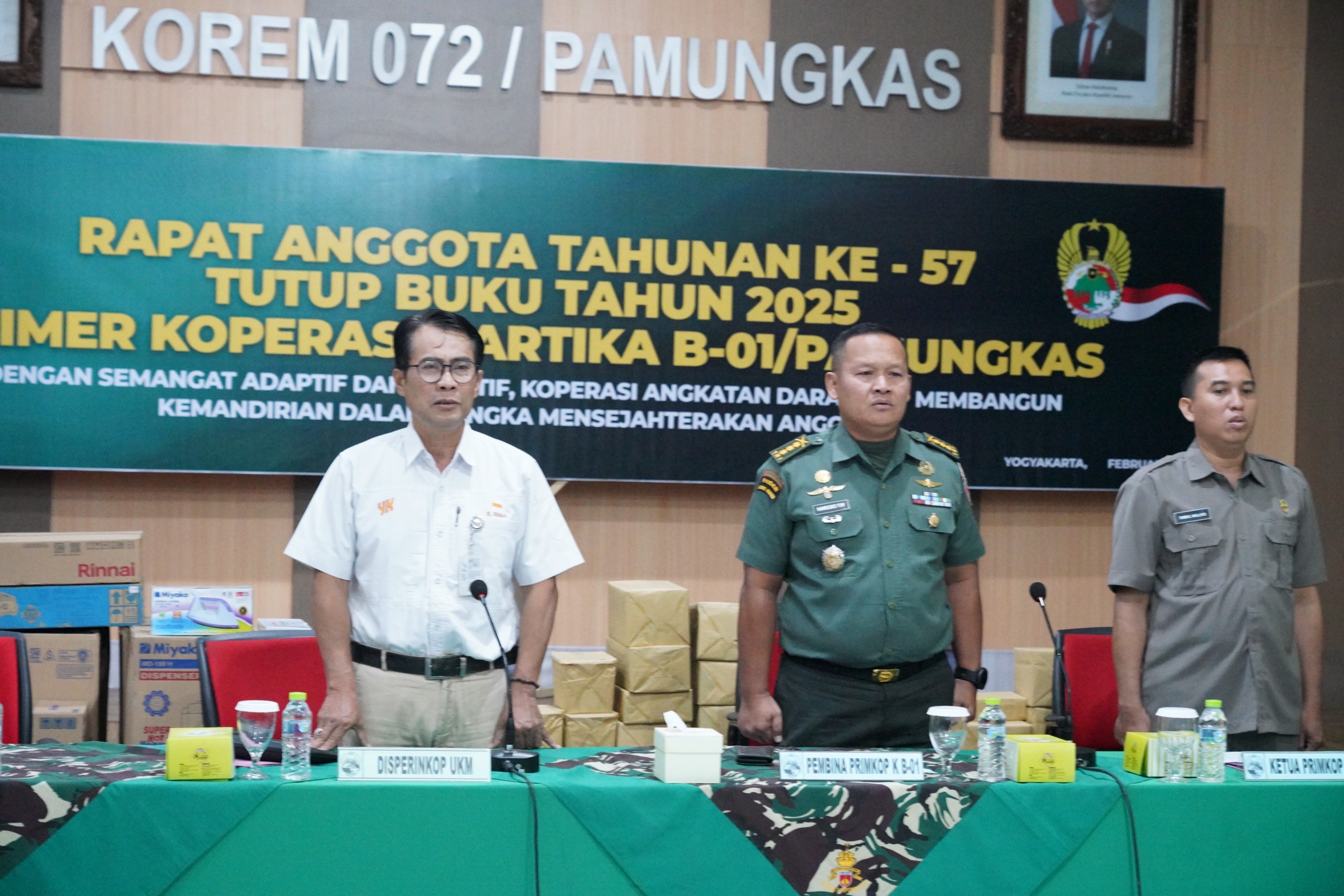 YOGYAKARTA (DIY) – MEDIA ONLINENEWS.ID//Korem 072/Pamungkas menyelenggarakan Rapat Anggota Tahunan (RAT) Primkop Kartika B-01 Pamungkas ke-57 Tutup Buku Tahun 2025 yang dibuka oleh Kasipers Kasrem 072/Pamungkas Kolonel Inf Handoko Yudho Wibowo, S.E., S.I.P., mewakili Danrem 072/Pamungkas bertempat di Aula Sugiyono Makorem 072/Pamungkas, Jalan Reksobayan No. 4 Kota Yogyakarta, Rabu (11/2/2026).