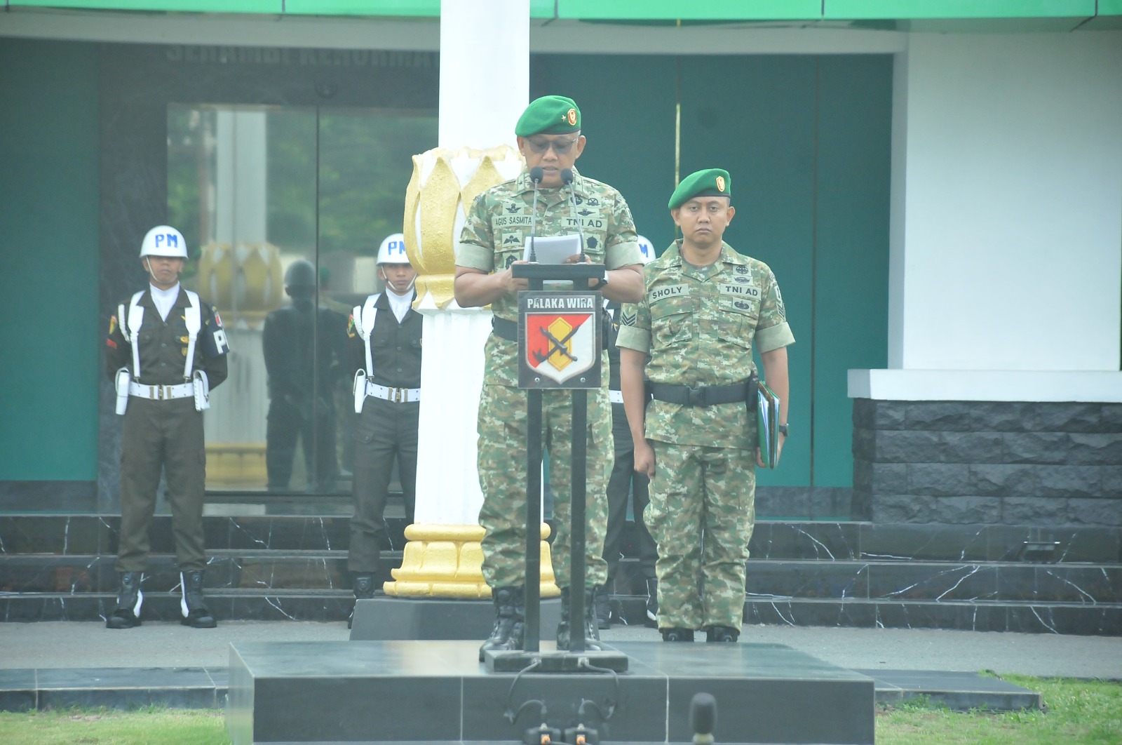 Upacara tersebut dipimpin oleh Kepala Staf Kodam (Kasdam) XXIII/Palaka Wira, Brigjen TNI Agus Sasmita, S.I.P., selaku Inspektur Upacara (Irup), dan diikuti oleh seluruh prajurit serta PNS Kodam XXIII/Palaka Wira.
