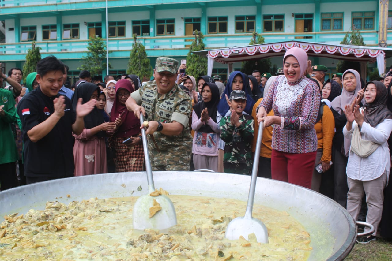 KEBUMEN – MEDIA ONLINENEWS.ID//Danrem 072/Pamungkas Brigjen TNI Bambang Sujarwo,S.H.,M.Sos.,M.M. bersama Tim Bobon Santoso Kuali Merah Putih, menggelar Masak Besar dan Buka Puasa Bareng Masyarakat di Lapangan MTS Al-Barokah Desa Binangun, Kec. Karanggayam, Kab. Kebumen, Sabtu (21/2/2026)
