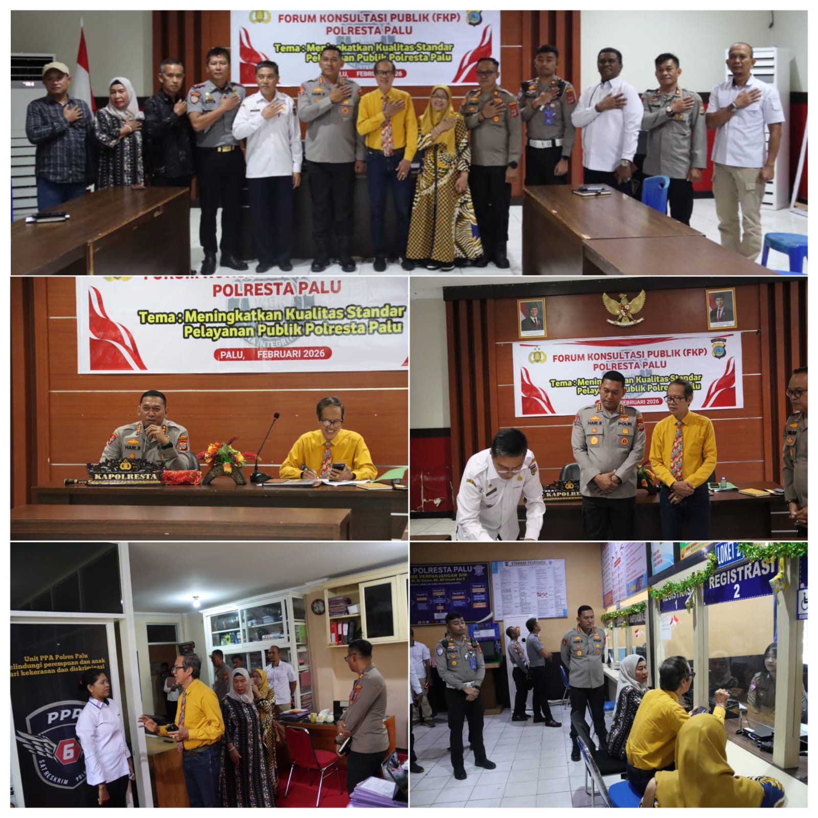 PALU, SULTENG – MEDIA ONLINENEWS.ID//Polresta Palu menggelar Forum Konsultasi Publik (FKP) sebagai langkah strategis dalam meningkatkan kualitas standar pelayanan publik di lingkungan kepolisian Kota Palu, Rabu 25/6/26. Kegiatan dilaksanakan di Aula Polresta Palu dan dihadiri oleh tokoh masyarakat, unsur pemerintahan, serta instansi terkait.