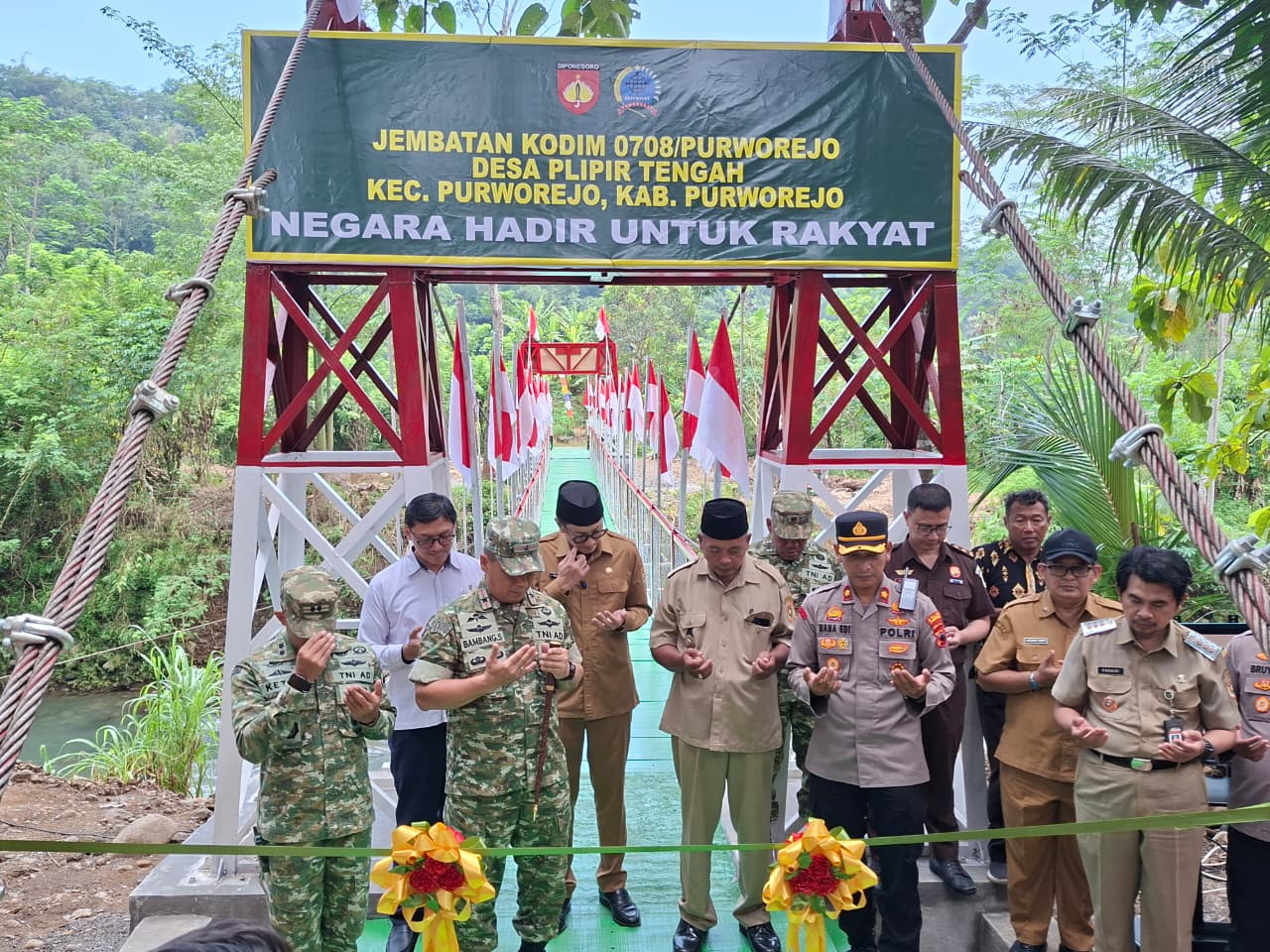 Dalam sambutannya, Danrem 072/Pamungkas menyampaikan rasa syukur atas diresmikannya jembatan gantung yang menghubungkan Desa Plipir dengan Desa Pacekelan. Keberadaan jembatan tersebut diharapkan mampu memberikan manfaat besar bagi masyarakat, khususnya dalam menunjang aktivitas perekonomian dan pertanian serta memperlancar mobilitas antar desa.