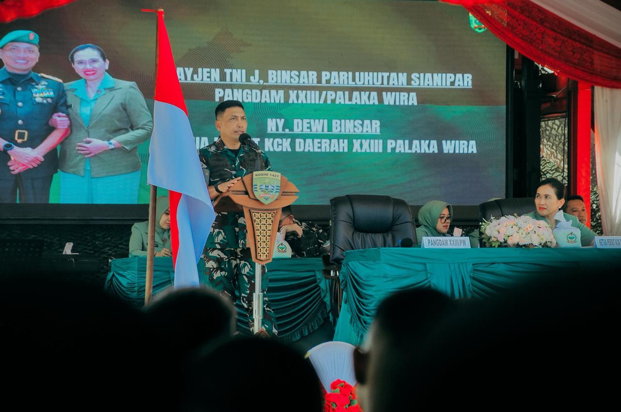 PASANGKAYU, SULBAR – MEDIA ONLINENEWS.ID//Pangdam XXIII/Palaka Wira, Mayjen TNI J. Binsar P. Sianipar beserta Ketua Persit KCK Daerah XXIII/Palaka Wira, Ny. Dewi Binsar, melaksanakan kunjungan kerja ke Kodim 1427/Pasangkayu, Kabupaten Pasangkayu.Senin 9/03/2026