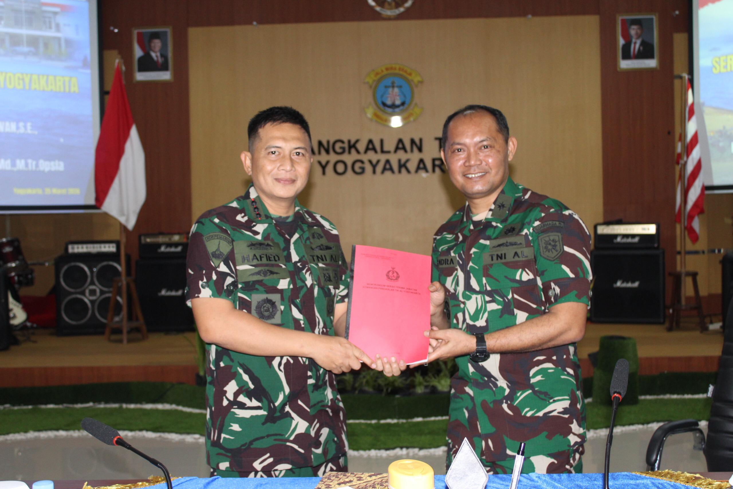 YOGYAKARTA – MEDIA ONLINENEWS.ID//Komandan Pangkalan TNI AL (Danlanal) Yogyakarta sebelumnya, Kolonel Marinir Hafied Indarwan, S.E., melaksanakan kegiatan memorandum dengan Danlanal Yogyakarta yang baru, Kolonel Laut (P) Hendra Siregar, A.Md., M.Tr. Opsla, di Mako Lanal Yogyakarta, Rabu (25/03/26).
