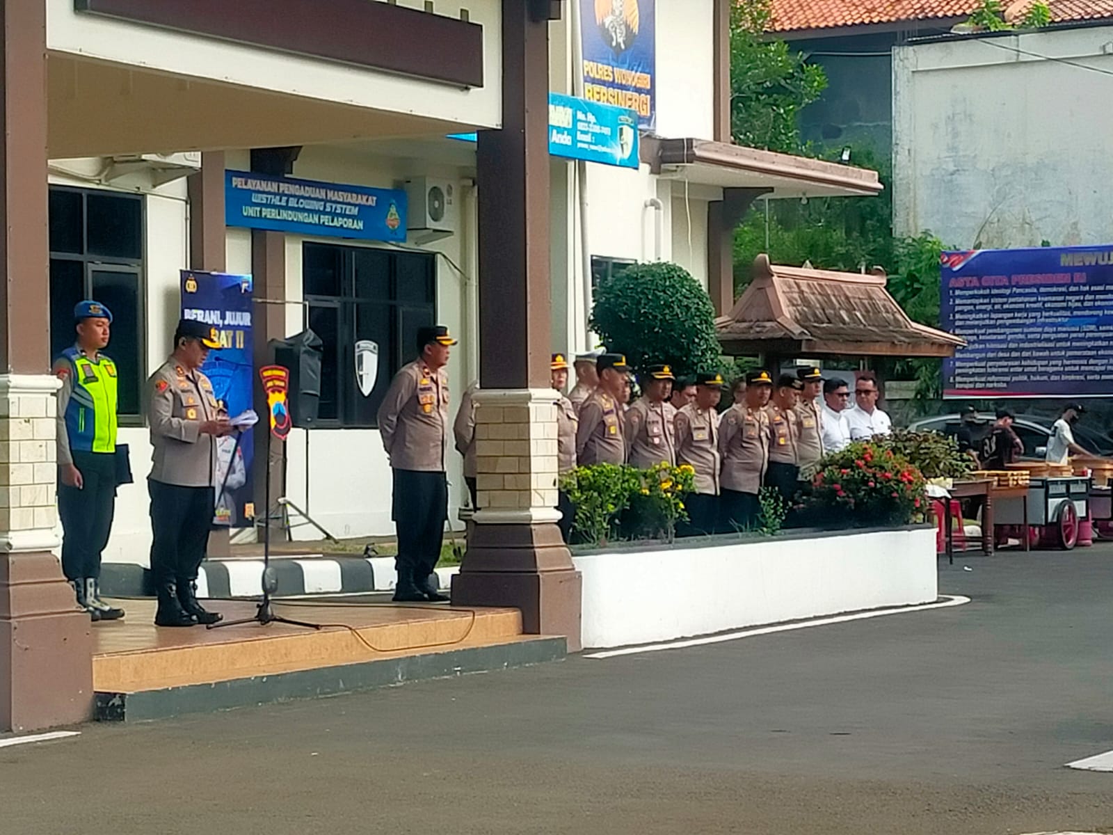 Apel diikuti oleh Wakapolres Wonogiri Kompol Parwanto, S.H., M.H., para pejabat utama, Kapolsek jajaran, serta seluruh anggota Polres Wonogiri.