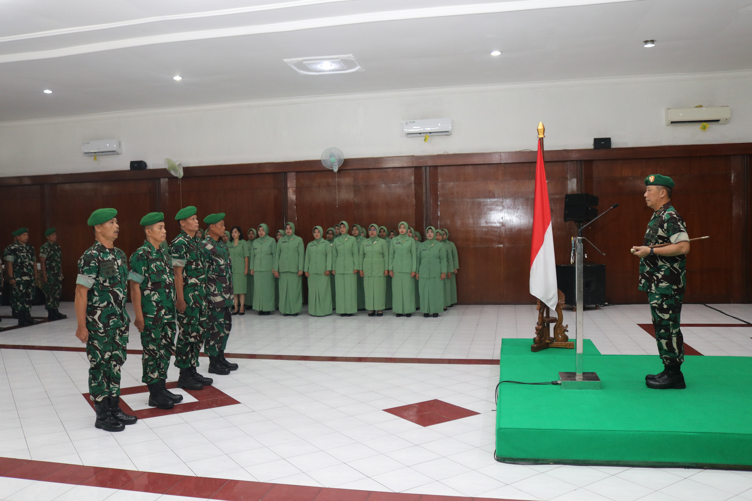 Turut hadir dalam upacara Para Kasi Korem 072/Pamungkas, Ketua Persit KCK Koorcabrem 072/Pamungkas Ny. Syahfitri Bambang Sujarwo, Perwira Korem 072/Pamungkas dan Pengurus Persit.(Penrem072/Pmk)