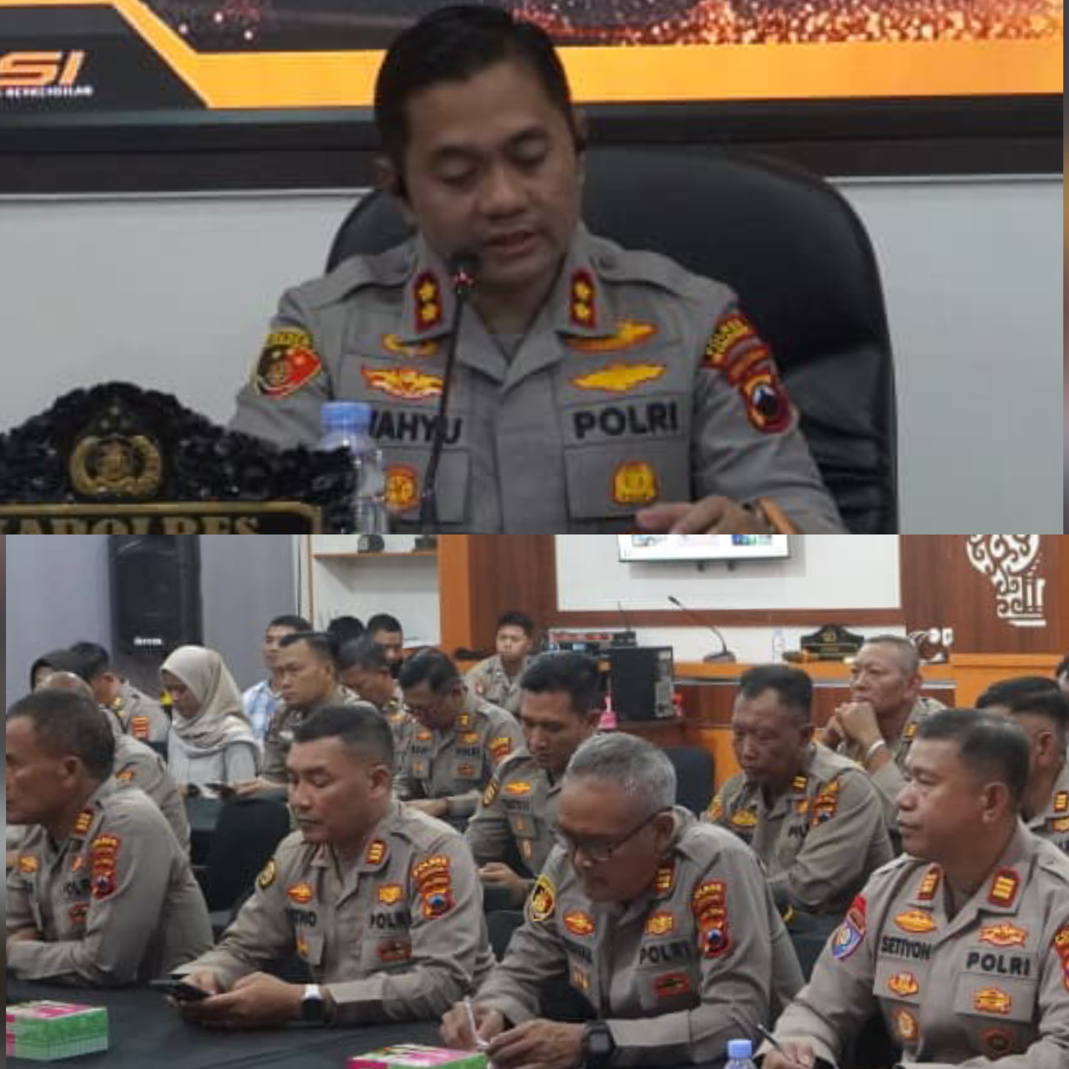 WONOGIRI, JATENG – MEDIA ONLINENEWS.ID// Kapolres Wonogiri AKBP Wahyu Sulistyo, S.H., S.I.K., M.P.M., menekankan pentingnya disiplin, profesionalitas, serta kesiapsiagaan seluruh personel dalam menjaga situasi kamtibmas tetap aman dan kondusif. Penegasan tersebut disampaikan saat memberikan arahan kepada Pejabat Utama (PJU) dan Kapolsek jajaran Polres Wonogiri di Aula Sanika Satyawada, Kamis (2/4/2026) pagi.