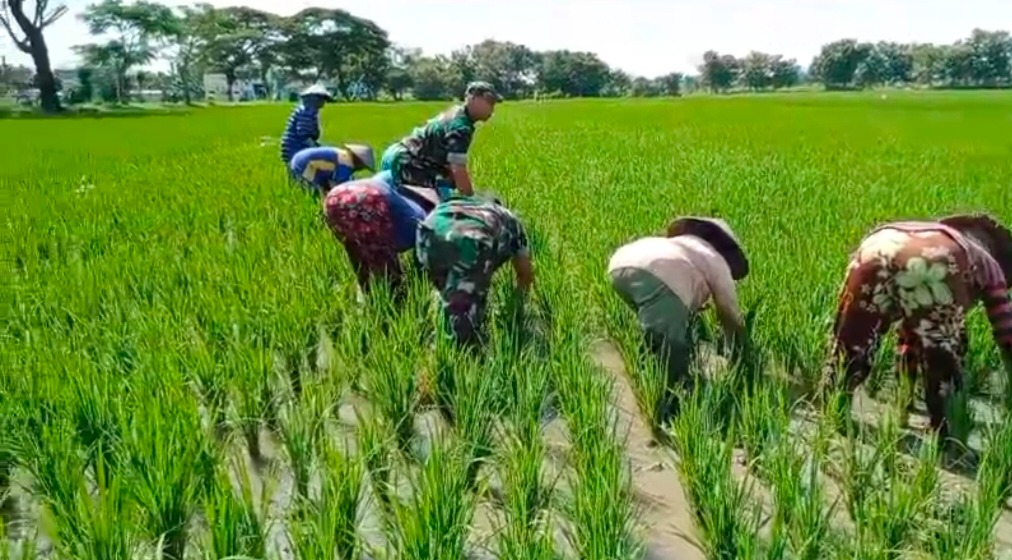 SRAGEN – MEDIA ONLINENEWS.ID//Dalam rangka mendukung peningkatan produksi pertanian, Serka Sugeng Riyadi dari Koramil 02/Karangmalang Kodim 0725/Sragen turun langsung ke sawah membantu petani melaksanakan penyulaman padi di Dukuh Golong Desa Pelemgadung, Kec. Karangmalang, Senin (06/04/2026).