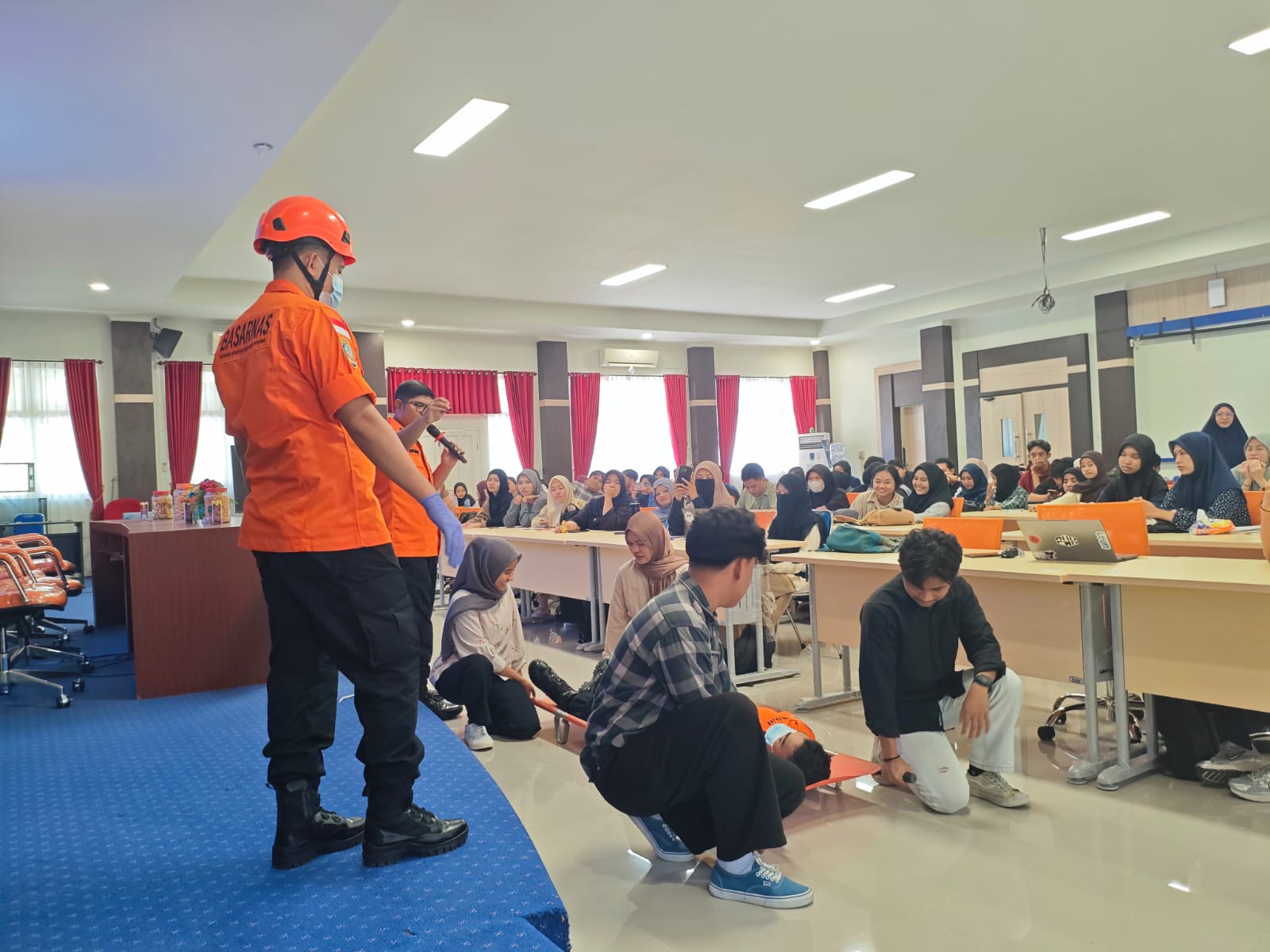 Salah satu instruktur, Arifuddin, S.E., M.AP. menyampaikan bahwa kegiatan ini penting untuk memberikan pemahaman dasar kepada mahasiswa dalam menghadapi kondisi darurat.