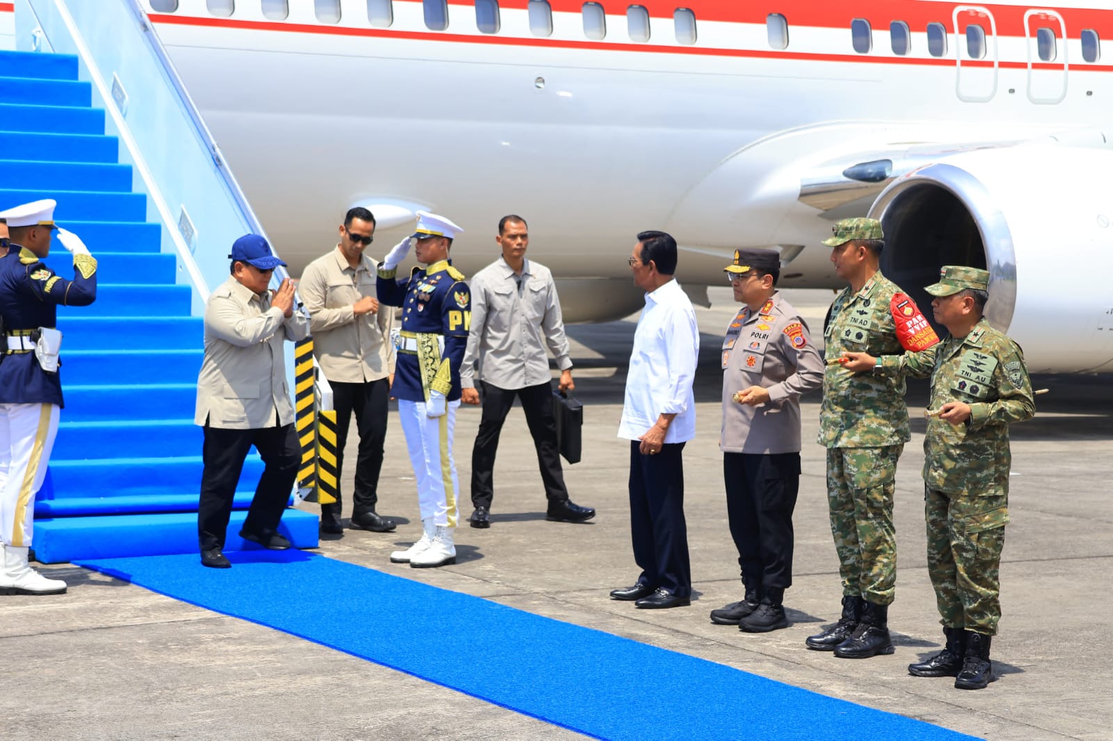 Presiden RI H. Prabowo Subianto beserta rombongan tiba di Base Ops Lanud Adisutipto menggunakan pesawat khusus Kepresidenan dari Pangkalan TNI AU Halim Perdanakusuma, Jakarta Timur