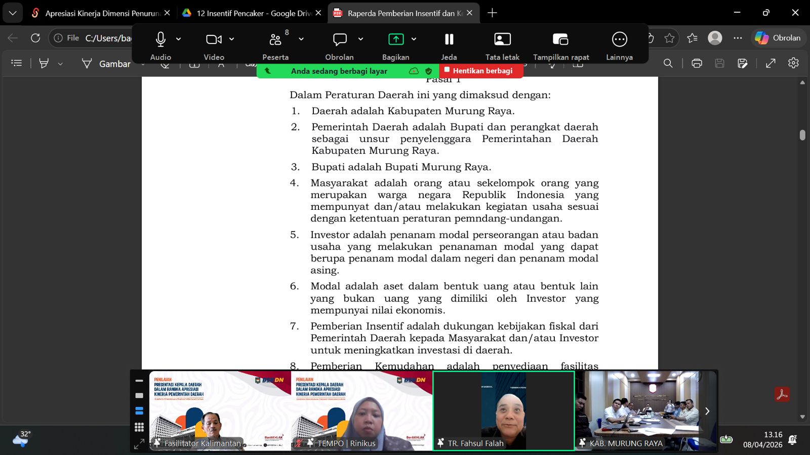 MURUNG RAYA – MEDIA ONLINENEWS.ID//Pemerintah Kabupaten Murung Raya terus menunjukkan langkah progresif dalam menekan angka pengangguran melalui penguatan kebijakan, pelatihan kerja, dan inovasi program ketenagakerjaan. Hal ini mengemuka dalam kegiatan Validasi Penilaian Apresiasi Kinerja Pemerintah Daerah (AKPD) Dimensi Penurunan Pengangguran yang dilaksanakan secara daring pada Rabu (8/4/2026).