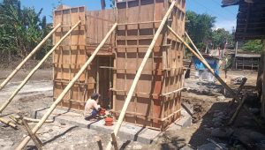 Di lapangan, para pekerja terlihat teliti merakit dan memasang papan bekisting yang diperkuat dengan penyangga bambu. Proses ini dilakukan secara gotong royong dan penuh kehati-hatian, agar hasil pengecoran nantinya dapat maksimal dan sesuai dengan standar konstruksi yang telah direncanakan.