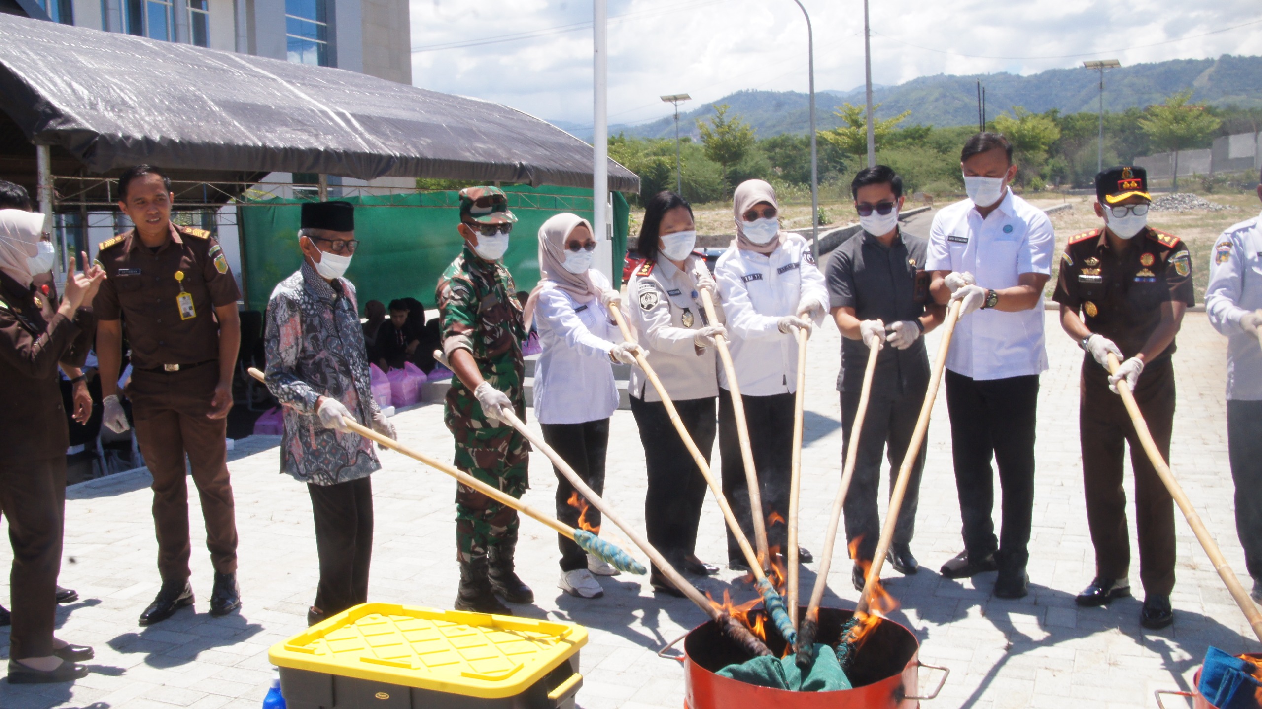 Adapun barang bukti yang dimusnahkan pada kegiatan ini meliputi 17 perkara tindak pidana narkotika dengan total berat netto 1.006,3929 gram, terdiri atas sabu-sabu seberat 891,8556 gram dan ganja kering seberat 114,5373 gram, serta 14 perkara tindak pidana umum yang terdiri atas 4 perkara ketertiban umum dan 10 perkara yang berkaitan dengan orang dan harta benda. Seluruh barang bukti telah melalui proses pemeriksaan laboratorium forensik dan pembuktian di persidangan sebelum dimusnahkan.
