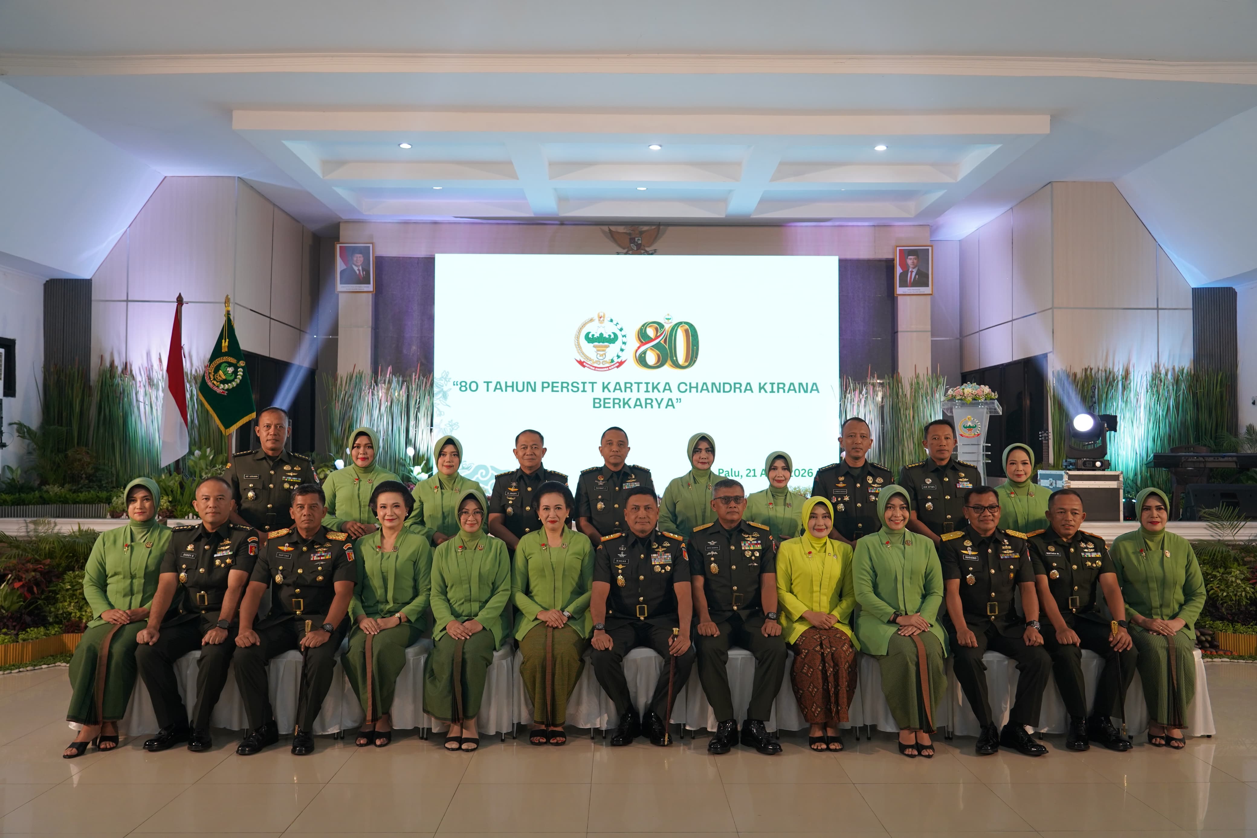 PALU, SULTENG – MEDIA O LINENEWS.ID// Dalam suasana penuh khidmat dan semangat kebersamaan, Komandan Korem 132/Tadulako Brigjen TNI Suntara Wisnu Budi H, S.H., M.Sc., Psc. bersama Ketua Persit KCK Koorcab Korem 132 PD XXIII/ Palaka Wira Ny. Eti Suntara Wisnu hadiri kegiatan peringatan Hari Ulang Tahun (HUT) ke-80 Persit Kartika Chandra Kirana yang mengusung tema “Persit Berkarya”. Kegiatan tersebut berlangsung di Aula Manggala Makodam XXIII/Palaka Wira. Jl. Sudirman, Besusu Barat, Kec. Palu Timur, Kota Palu, Sulawesi Tengah.
