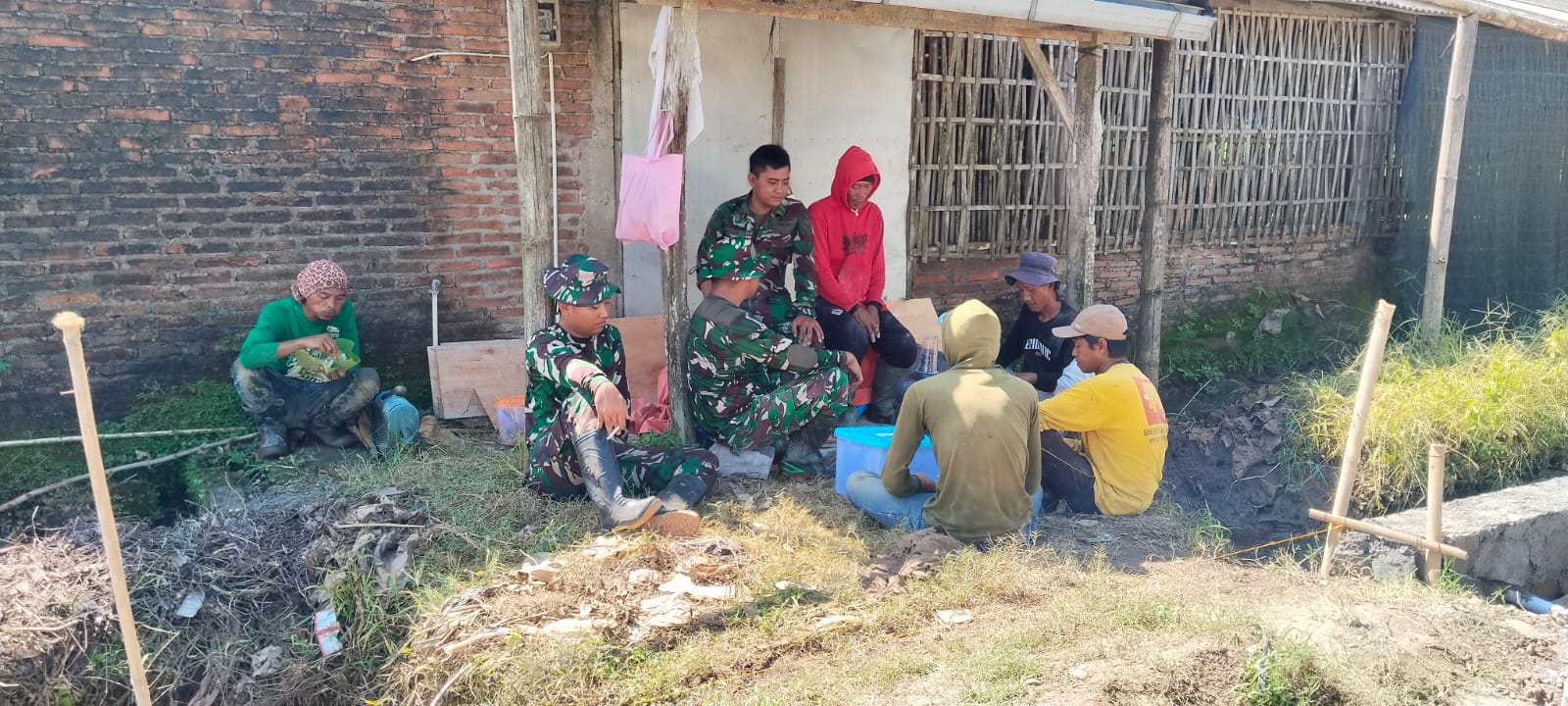 SRAGEN – MEDIA ONLINENEWS.ID//Dalam pelaksanaan program TNI Manunggal Membangun Desa (TMMD) Reg Ke-128 Kodim 0725/Sragen, disela–sela pekerjaan sasaran fisik yang menguras tenaga, para prajurit memanfaatkan waktu istirahat untuk bersenda gurau antara anggota satgas TMMD bersama masyarakat. Jum’at (24/04/2026)